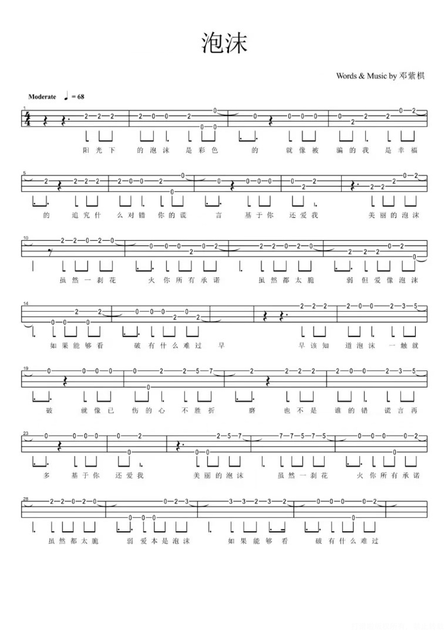 泡沫尤克里里谱 - 邓紫棋