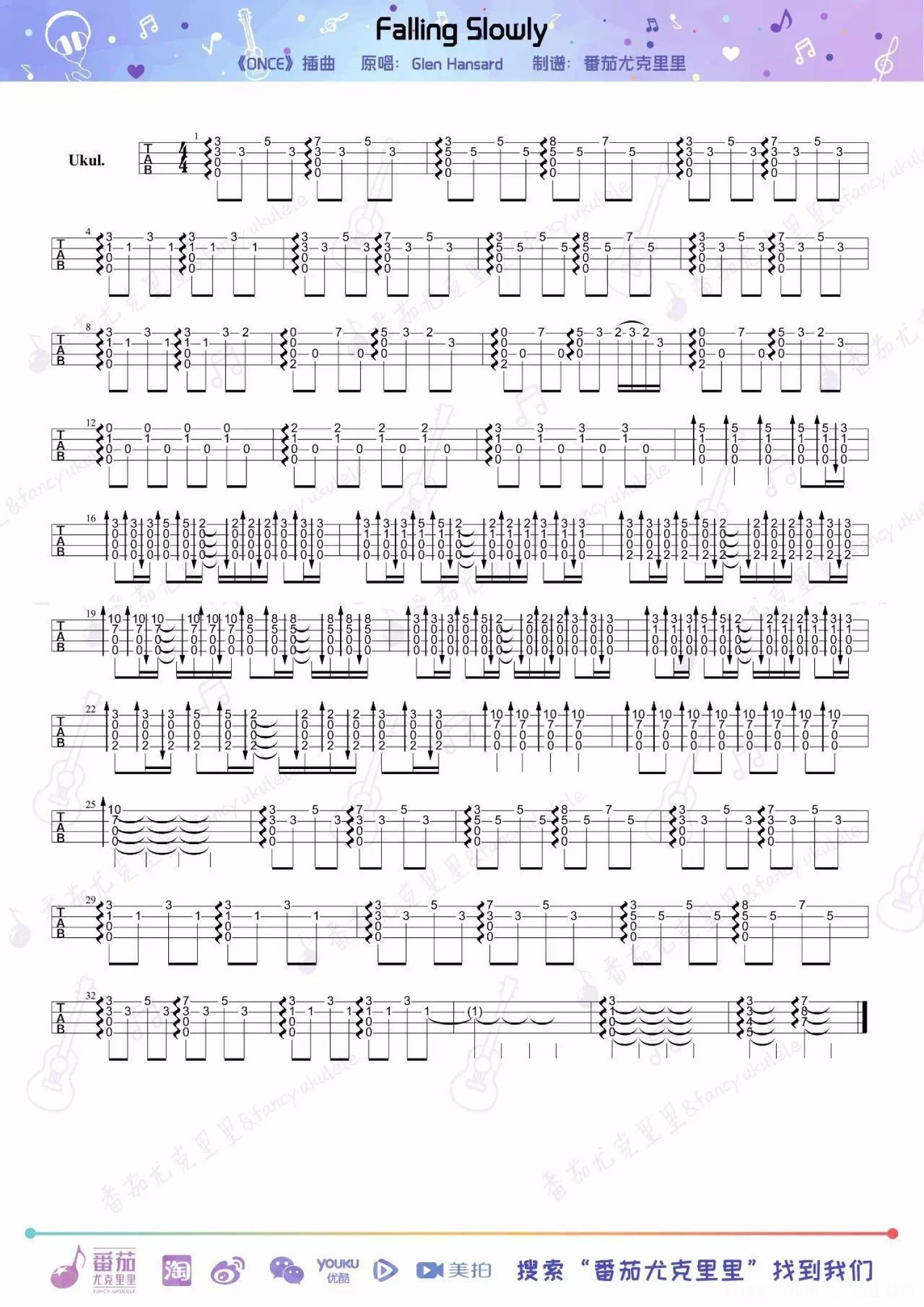 曲谱介绍: 《Falling Slowly》_尤克里里谱