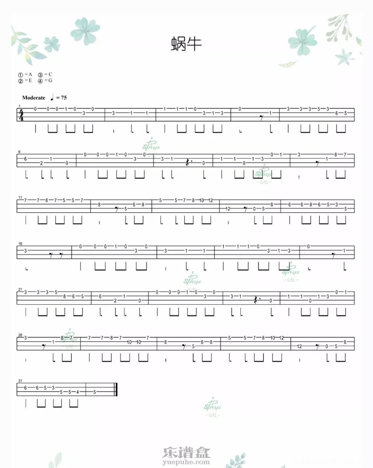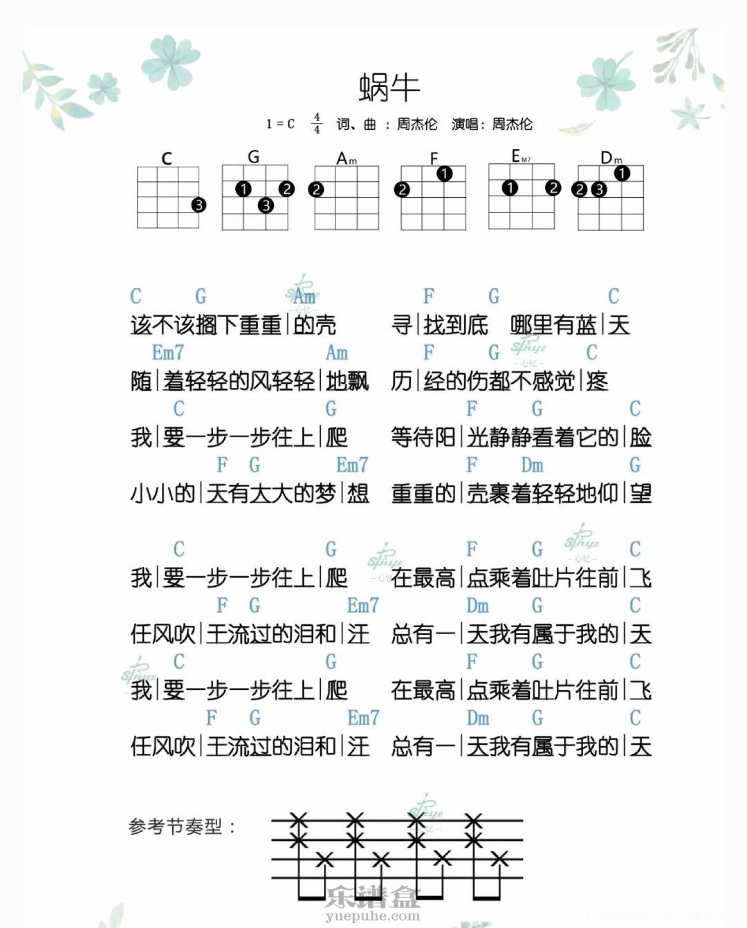曲谱介绍: 周杰伦《蜗牛》_C调尤克里里谱