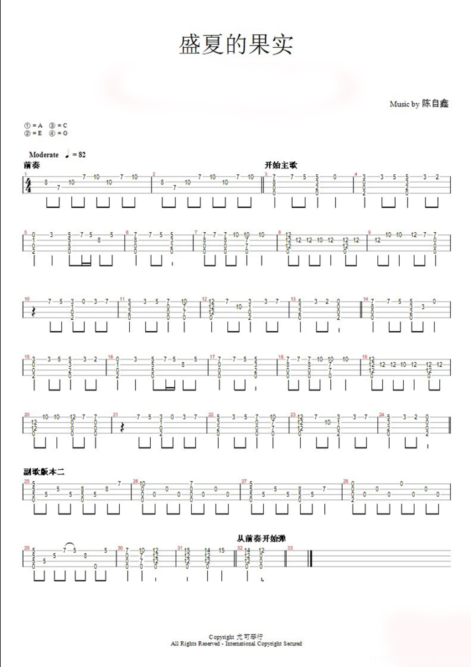 当前位置:琴谱网>尤克里里>盛夏的果实