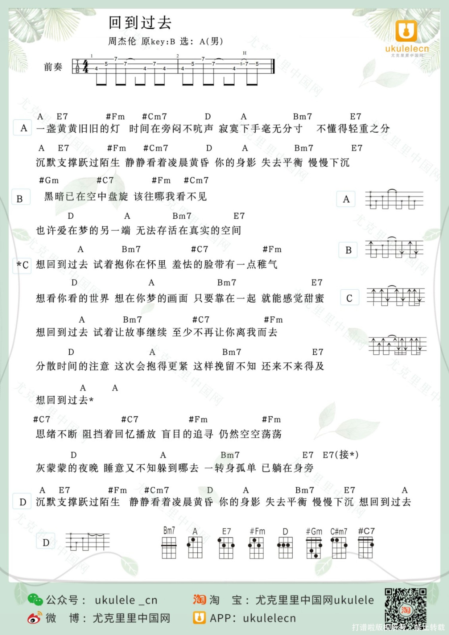曲谱介绍: 周杰伦《回到过去》_A调尤克里里谱