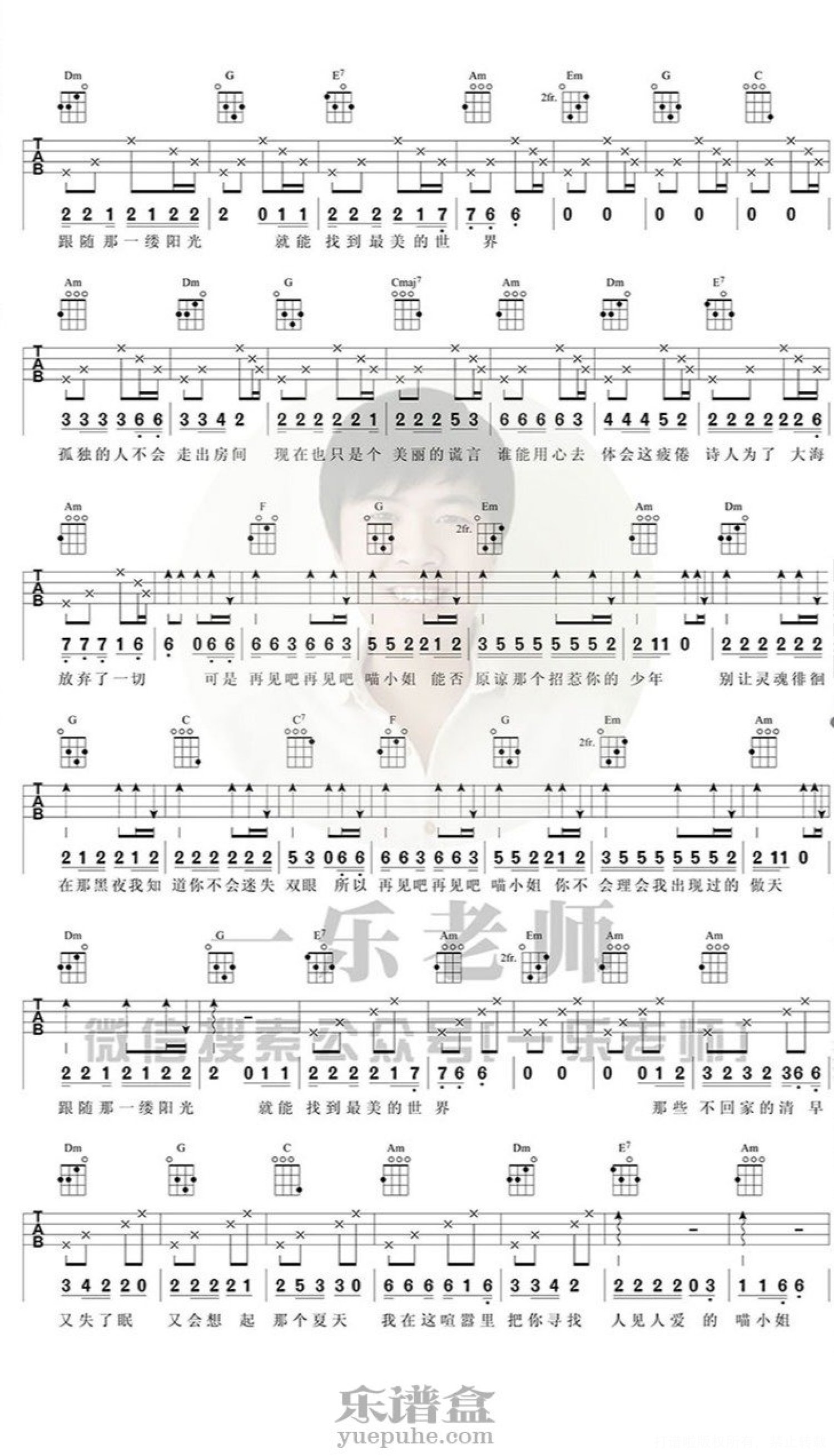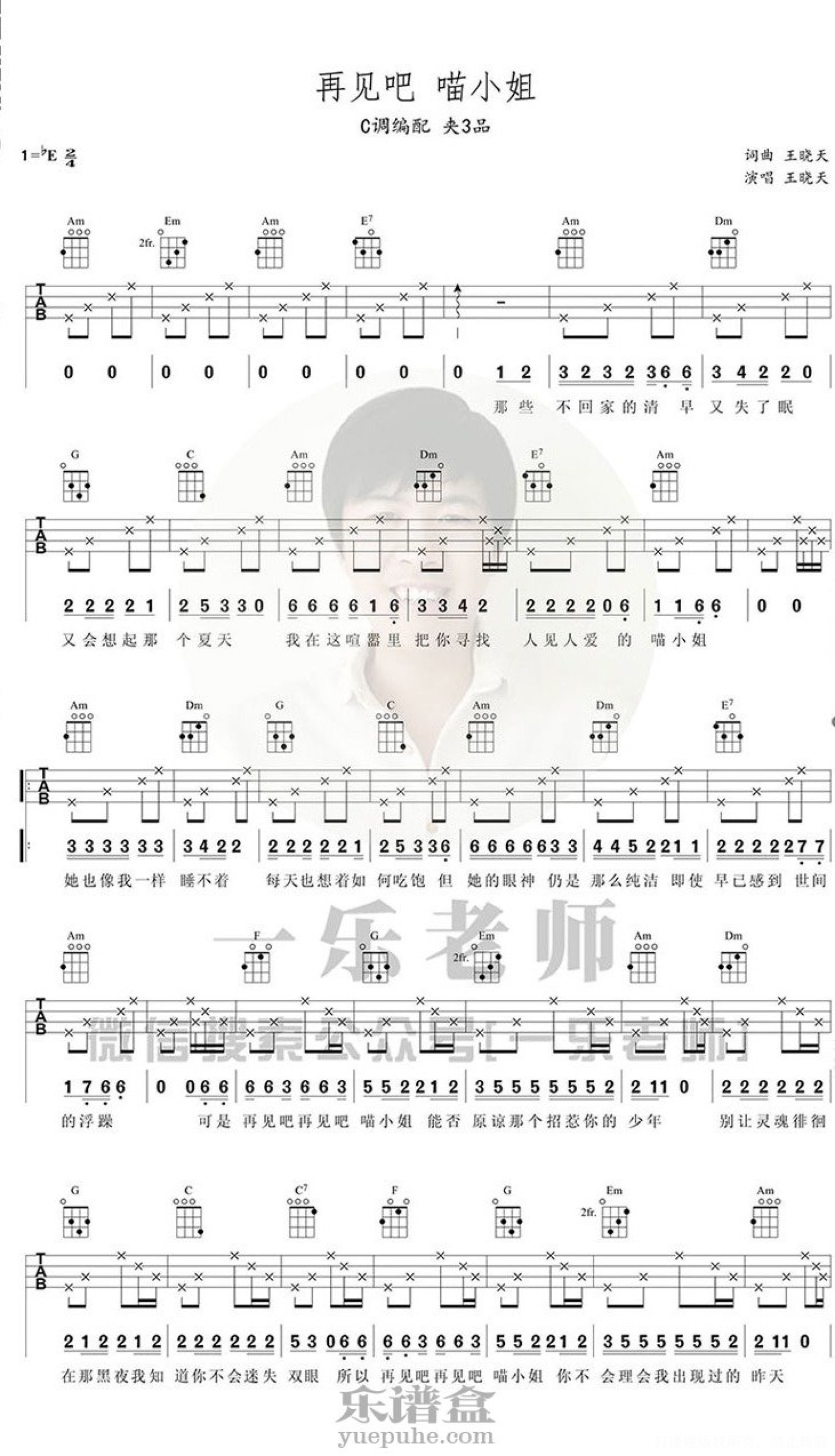 曲谱介绍: 王晓天《再见吧喵小姐》_C调尤克里里谱