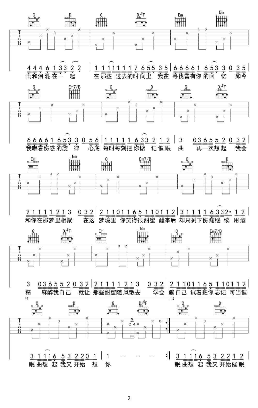 曲谱介绍: 《催眠曲》吉他谱_贾涛戴/雨哲_G调原版弹唱谱_高清六线谱分享,《催眠曲》是由贾涛戴和雨哲合作演唱的一首歌,这首悠扬的网络伤感的情感歌,催眠歌的意义在于听到你感到一声哭泣,疲惫而自然入睡,非常情绪化。听这首歌,它让我想起了你,远方的你还好吗?这首歌让我们带着他们悠扬的吉他声入睡,去人间天堂,那里没有悲伤,只有幸福和幻想。