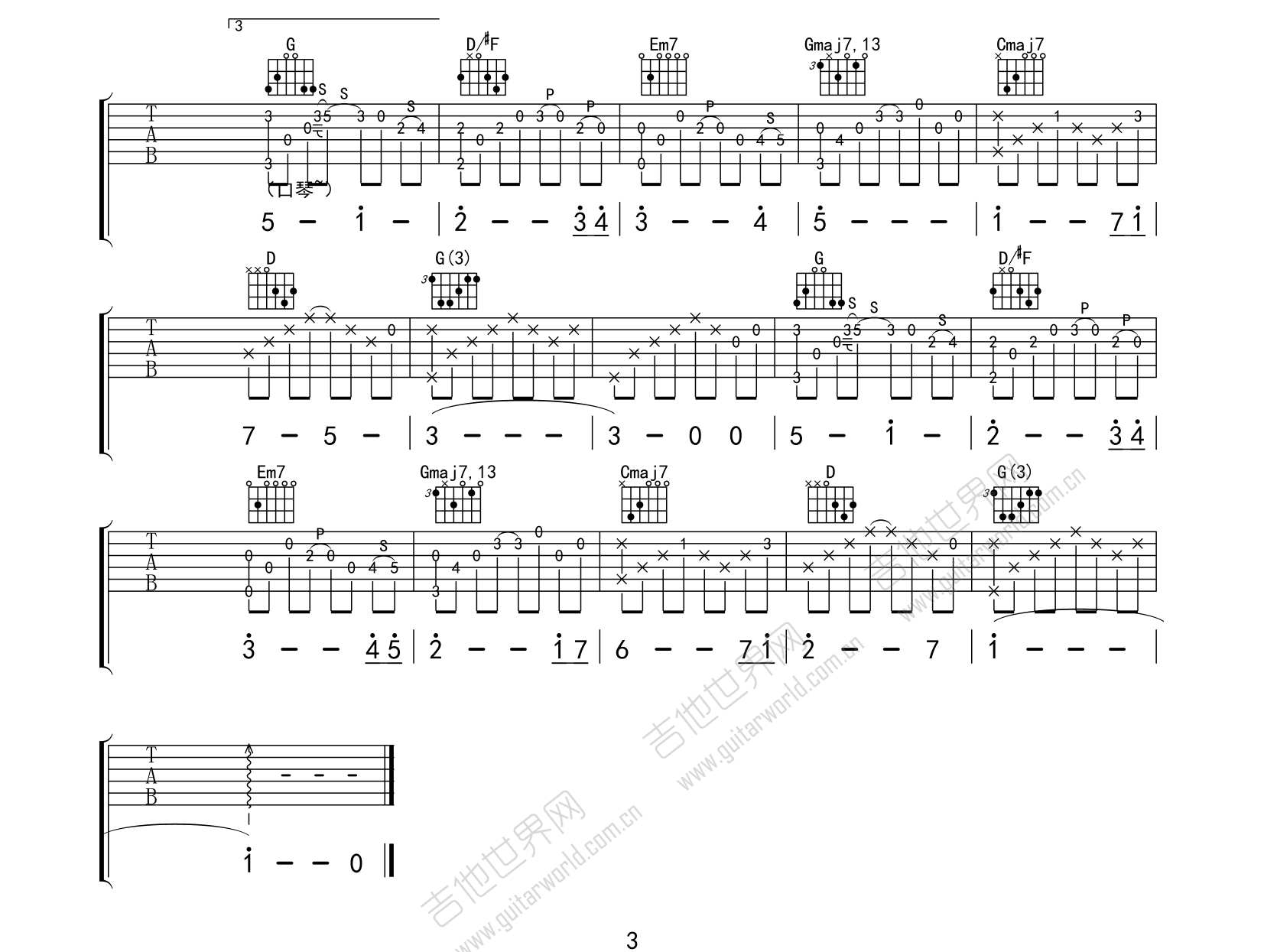 曲谱介绍: 雾吉他谱_张小九/年年_《雾》G调原版弹唱六线谱_高清图片谱分享,《雾》是由张小九作曲并演唱的一首民谣歌曲,这首歌前奏比较长,但旋律非常好听,张小九那干净纯粹而又不瘟不火的嗓音静静的诉说着他内心想要表达的情感,一首非常耐听的歌。 此版本的曲谱来源于“一阵风”扒谱制谱,歌曲原调为#A调,这里采用G调指法根据原版进行编配,演唱时夹变调夹3品回到原调。这首歌难点主要还是在于前奏的旋律部分、封闭和弦的转换以及击勾弦技巧的使用,有一定难度。 雾吉他谱_张小九/年年_《雾》G调原版弹唱六线谱_高清图片谱1: