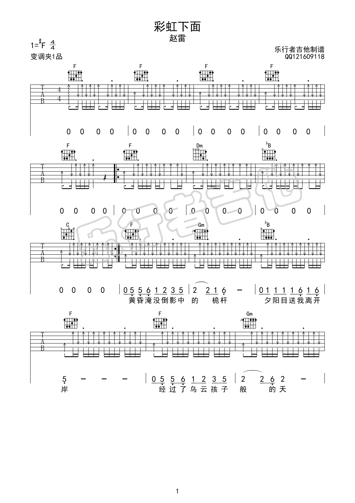 彩虹下面吉他谱 - 赵雷 - F调吉他弹唱谱 - 原版
