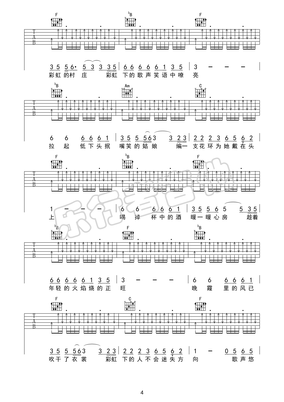 琴谱网为您精心推荐 彩虹下面 高清图谱