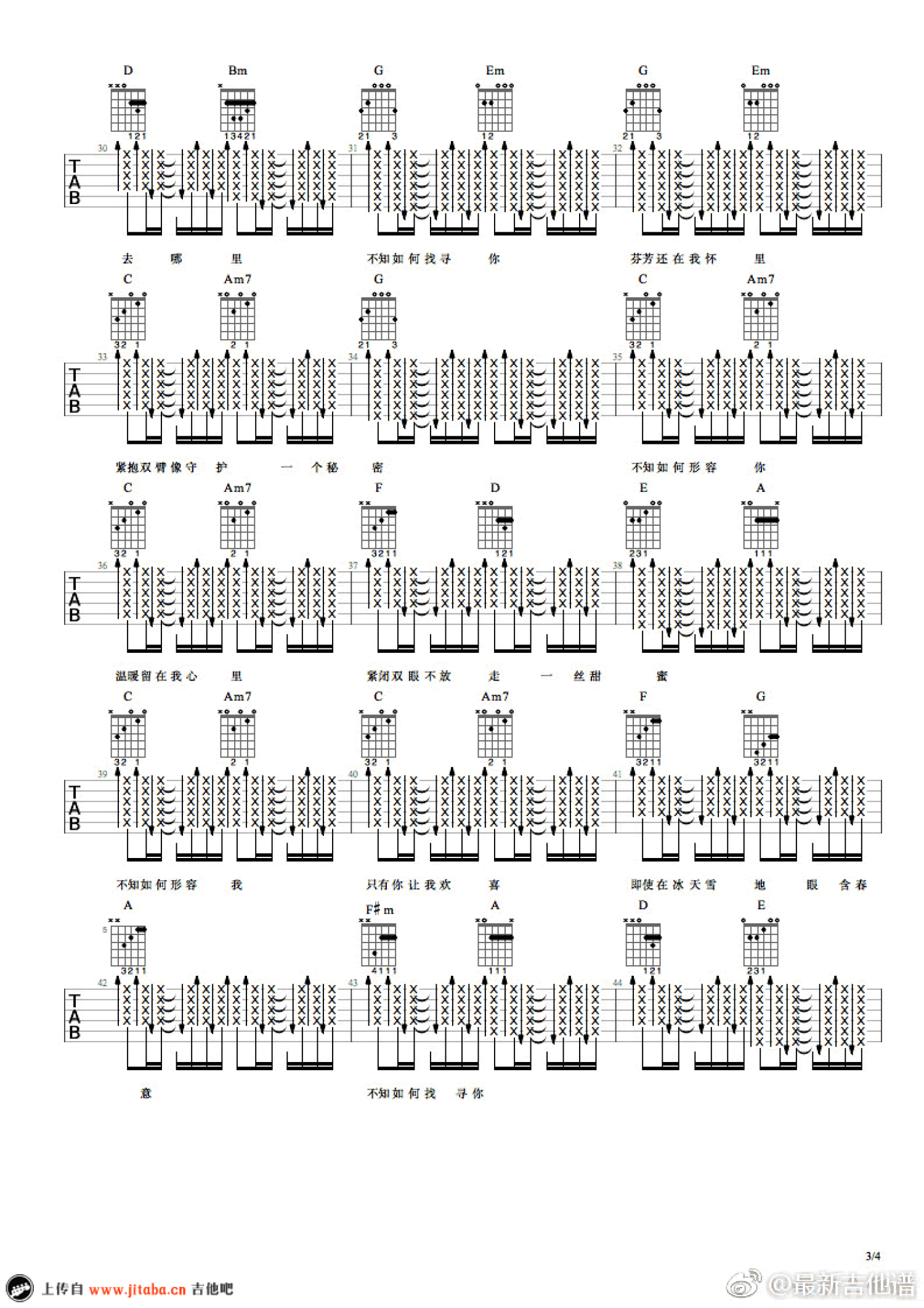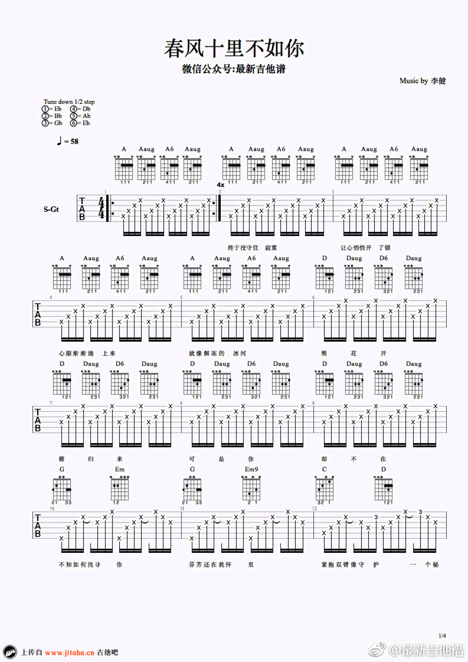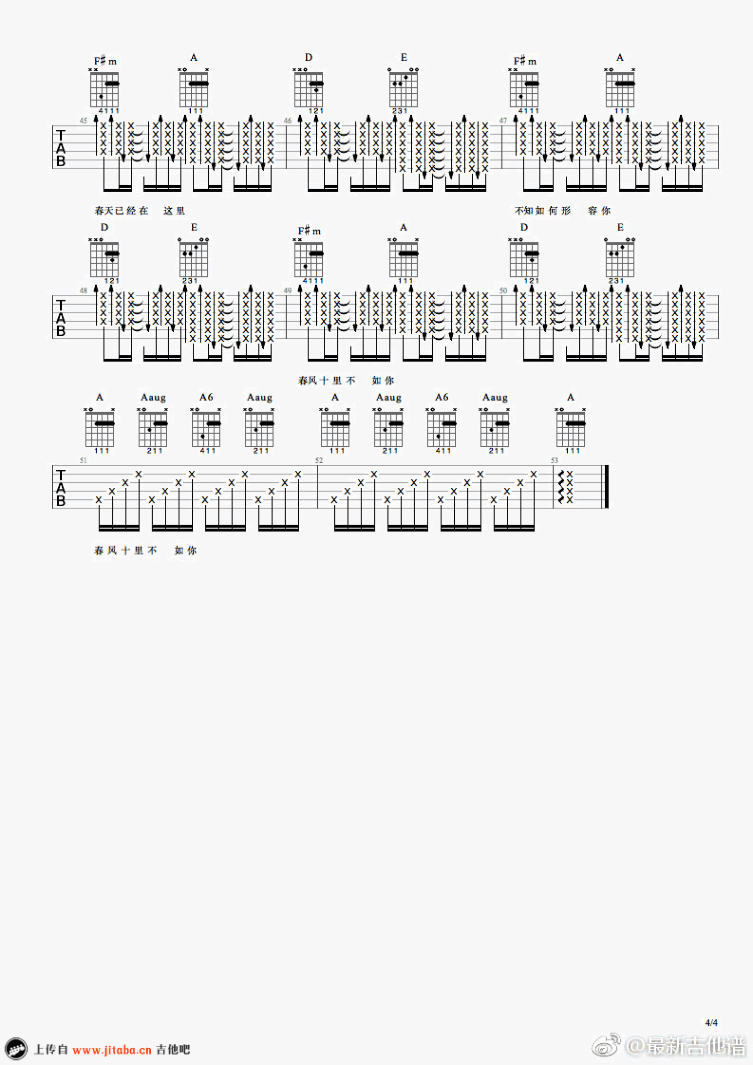 吉他弹唱原调来源:最新吉他谱1178 浏览2018-03-19 13:34发布图谱共4页