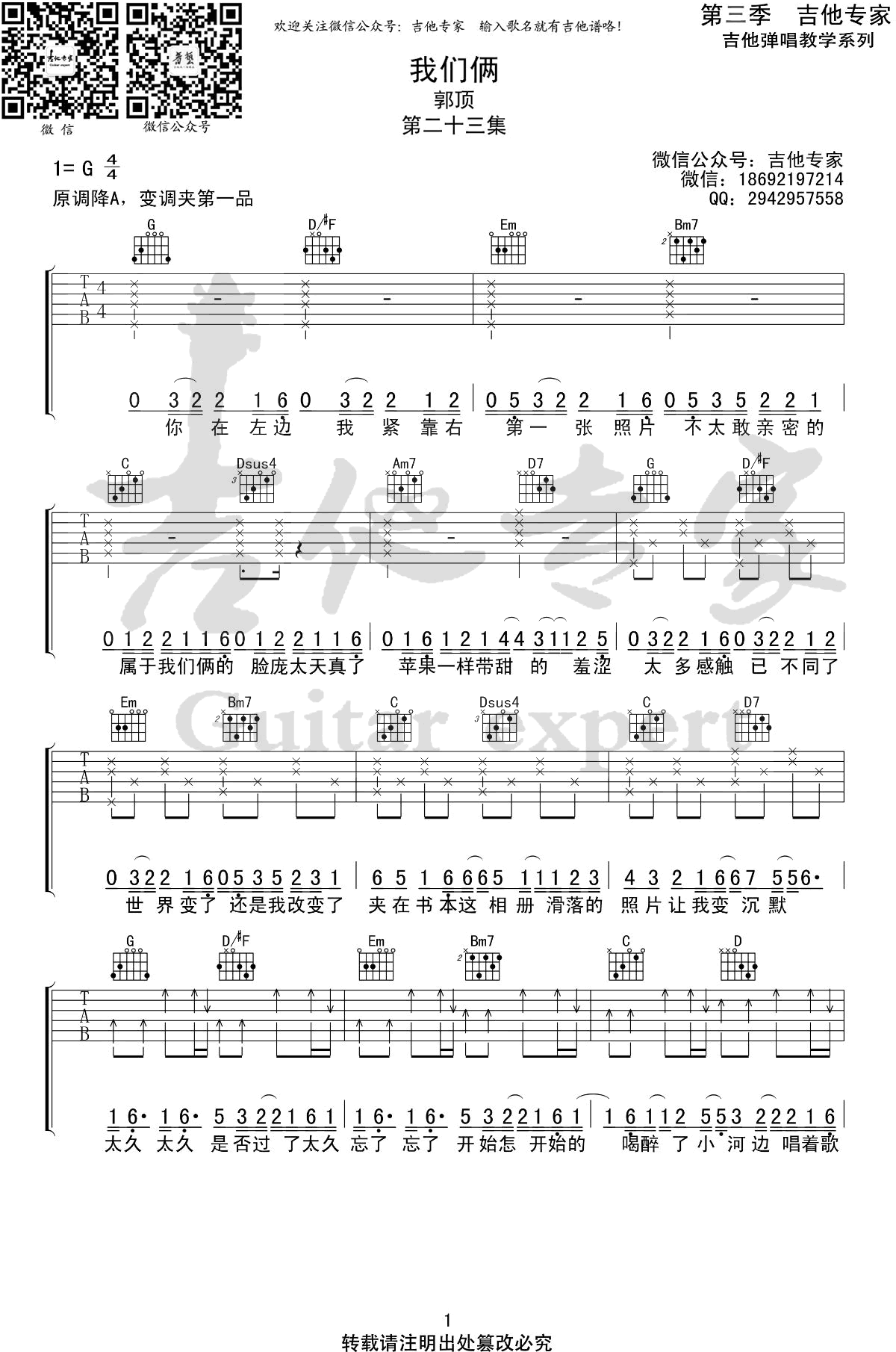 曲谱介绍: 《我们俩》吉他谱_郭顶_G调原版弹唱六线谱_高清图片谱分享,《我们俩》是由郭顶演唱的一首歌。