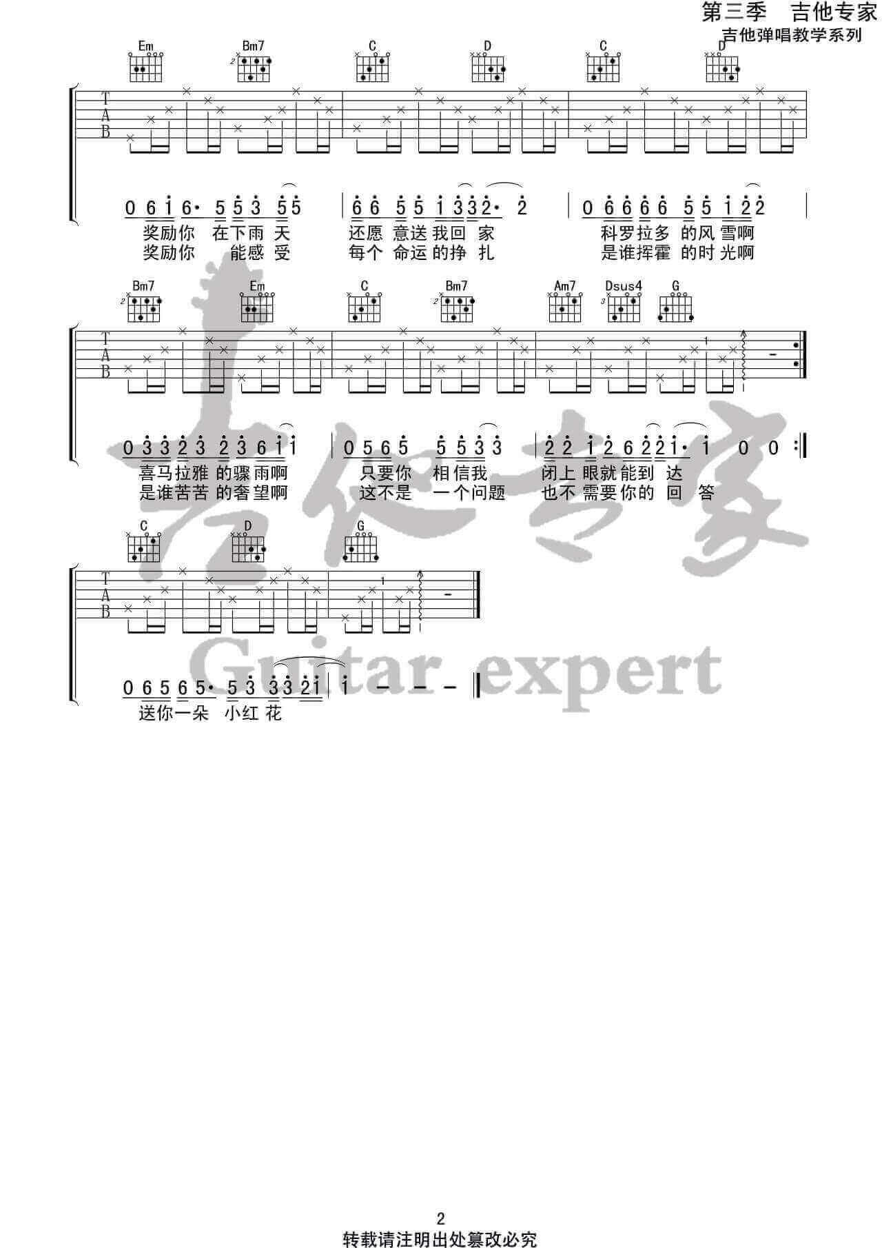当前位置:琴谱网>吉他弹唱>送你一朵小红花