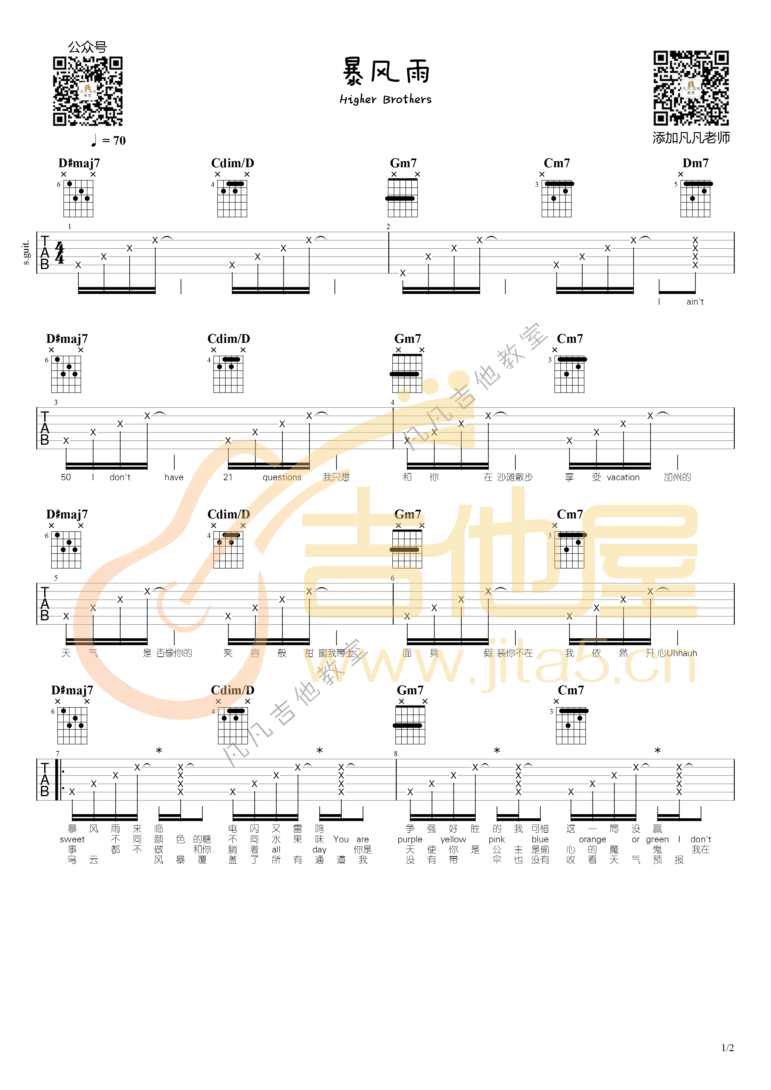 曲谱介绍: 暴风雨吉他谱_马思唯_《暴风雨》B调弹唱六线谱_高清图片谱分享,《暴风雨》这是首情歌,从“马思唯马思唯马思唯我要给你种个草莓”开始,马思唯成为说唱圈的男神。男神唱情歌的杀伤力,是极其可怕的,但马思唯几乎不唱情歌。于是《暴风雨》成为马思唯极少数情歌之一。 吉他弹唱演示及视频教学