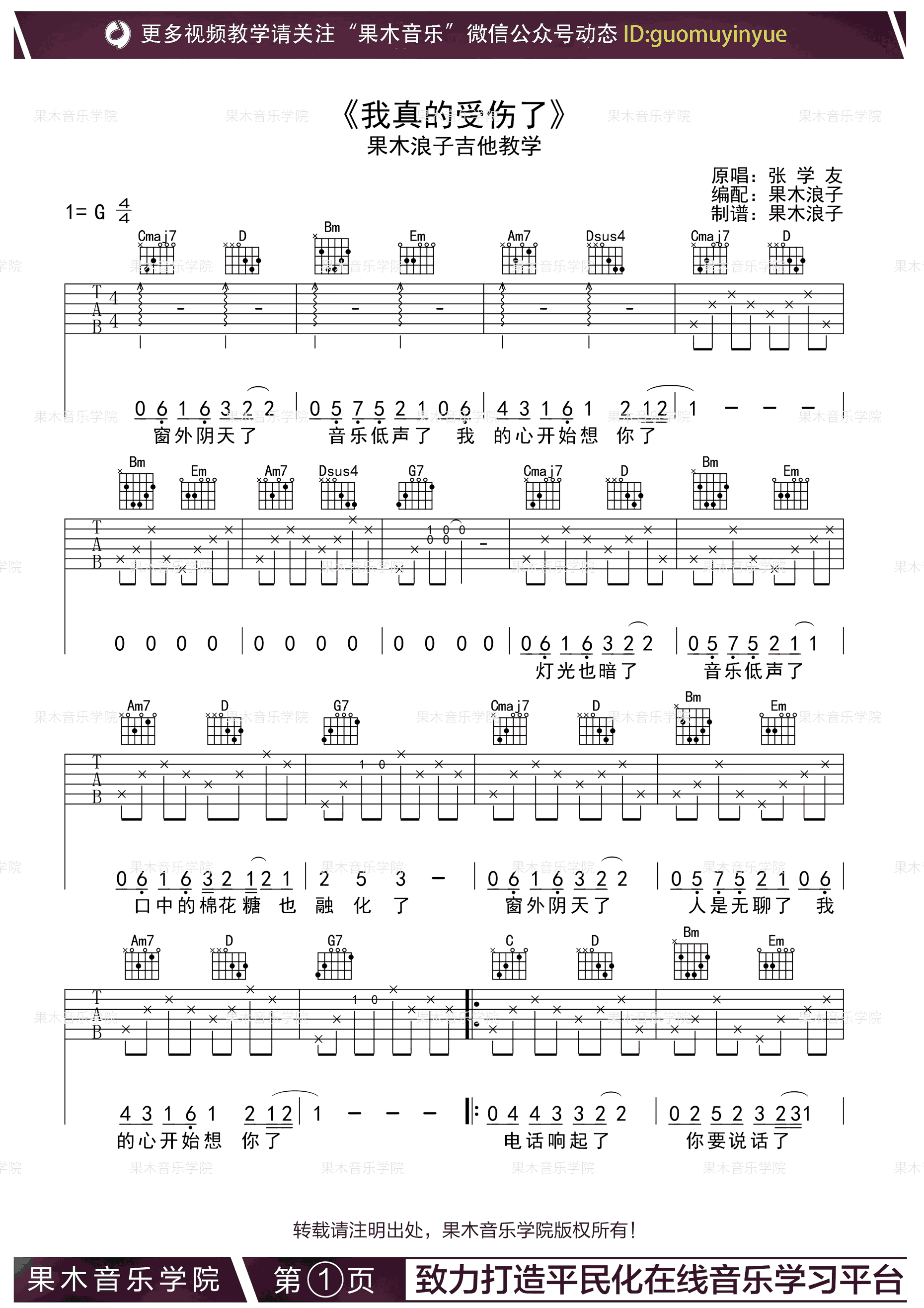 我真的受伤了吉他谱 - 张学友 - G调吉他弹唱谱 - 原版