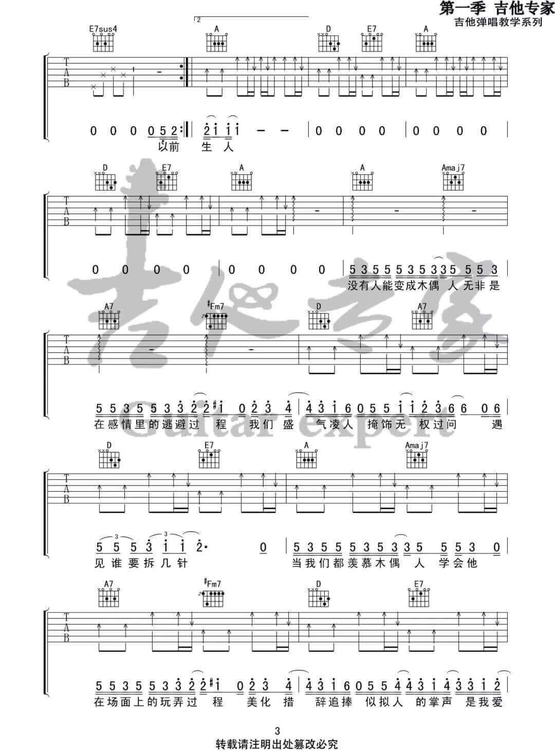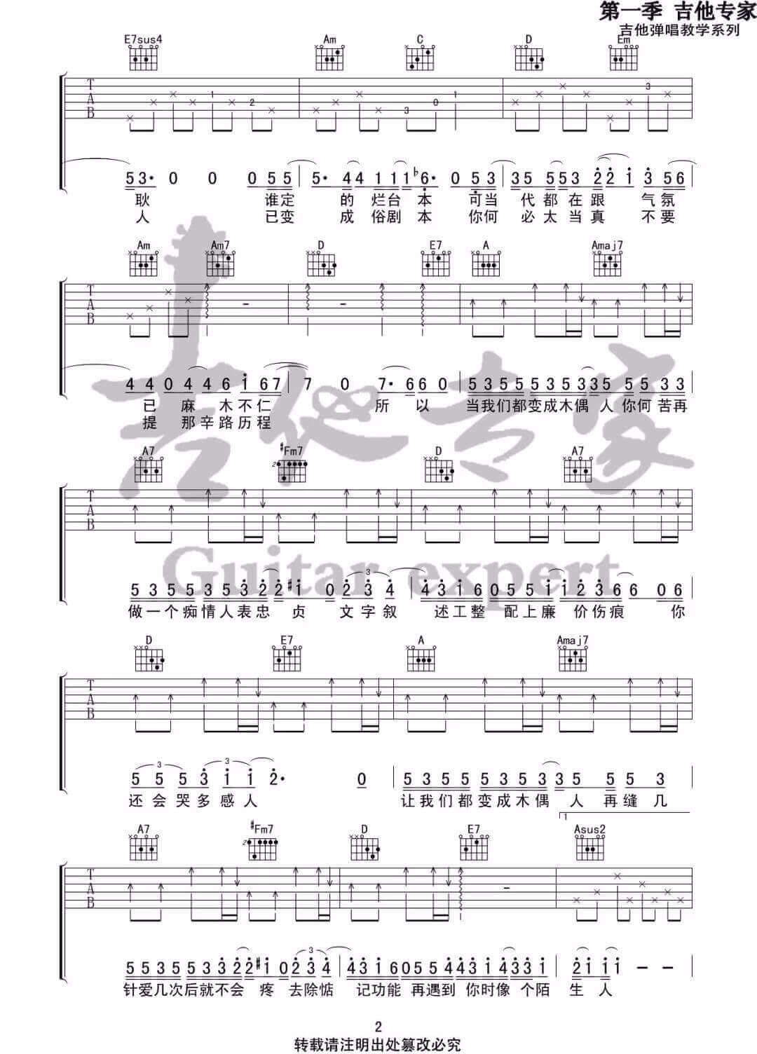 当前位置:琴谱网>吉他弹唱>木偶人