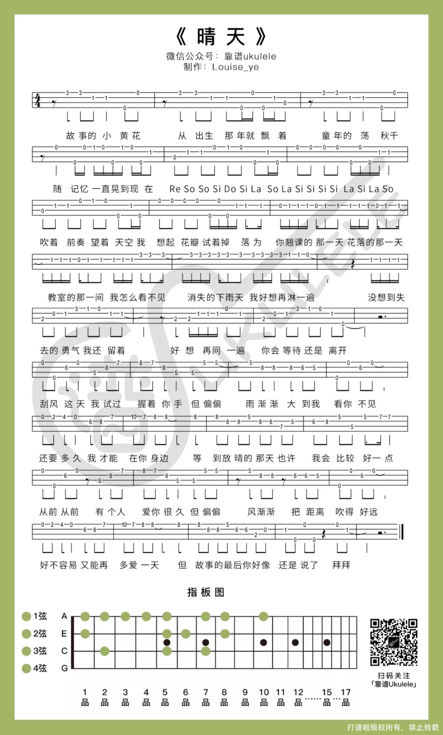 晴天尤克里里谱 - 周杰伦