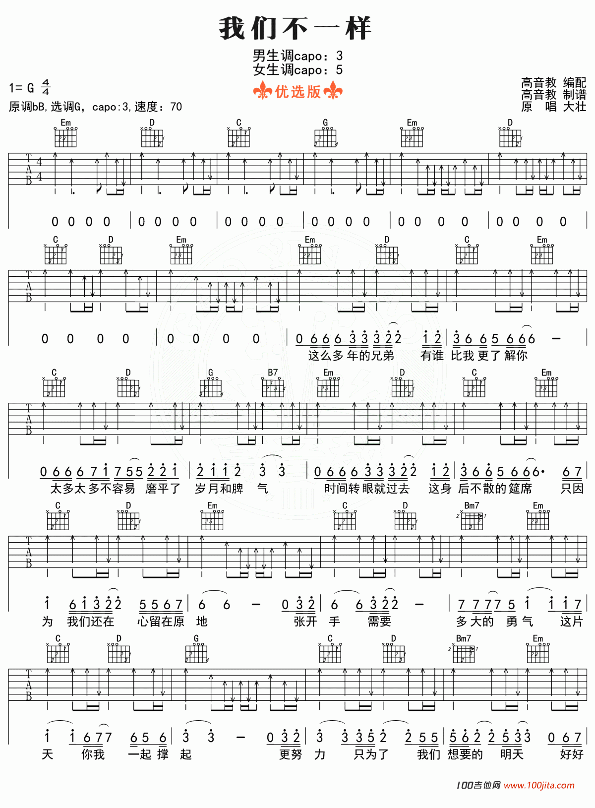 我们不一样吉他谱 - 大壮 - G调吉他弹唱谱