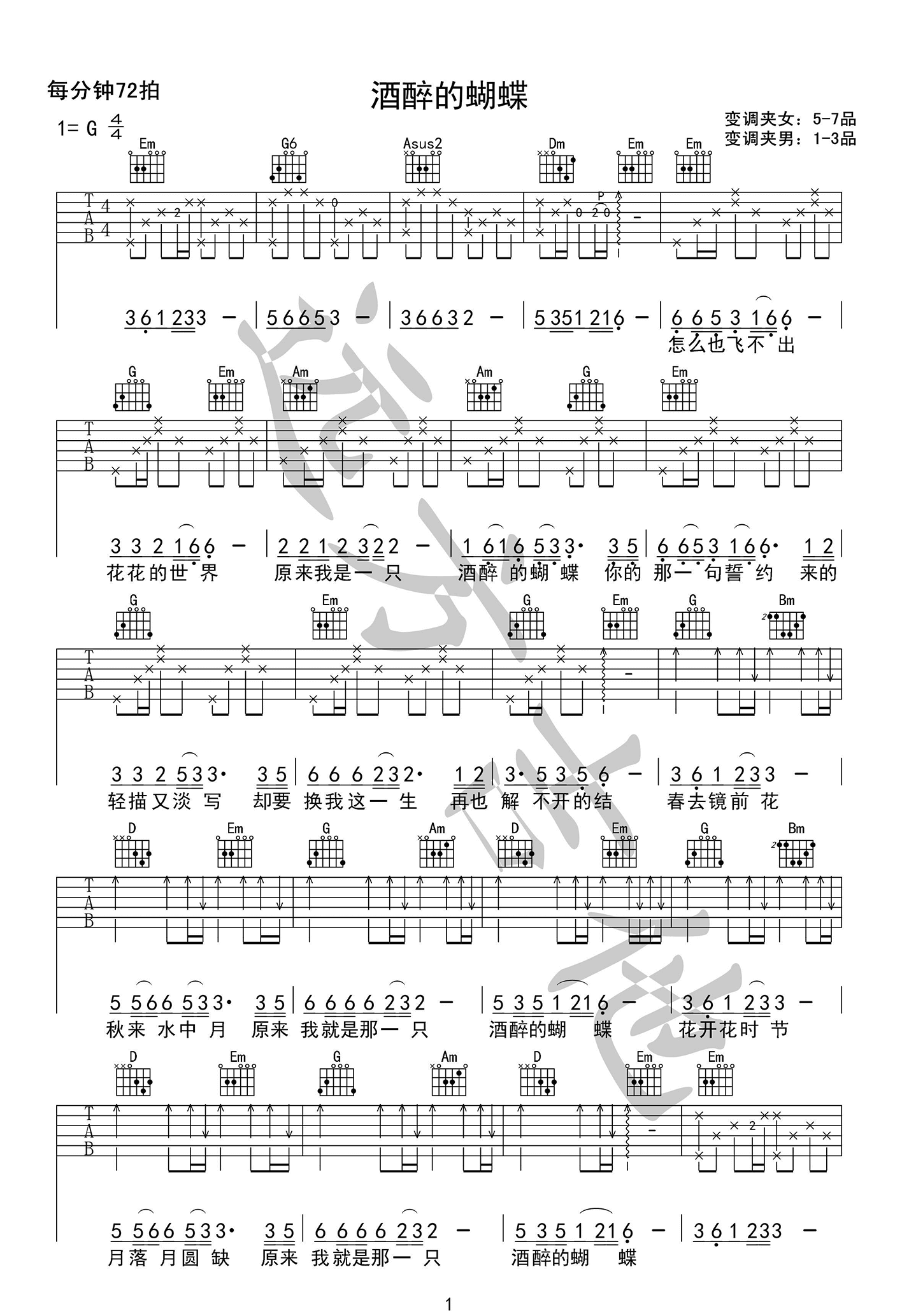 吉他弹唱G调来源:良好市民333 浏览2024-02-07 17:48发布图谱共2页