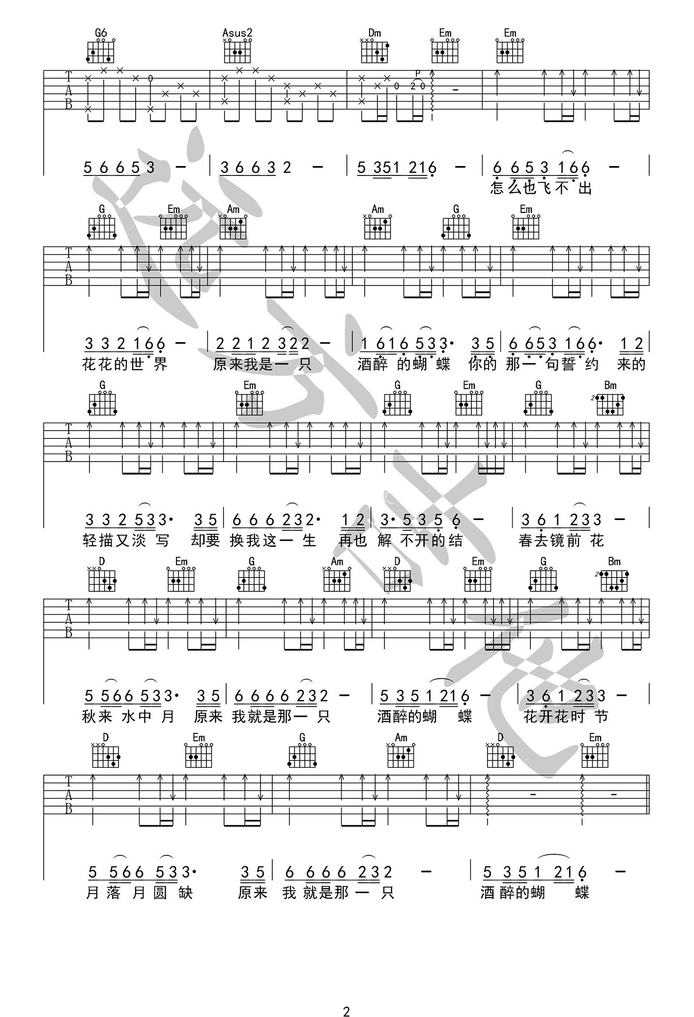 当前位置:琴谱网>吉他弹唱>酒醉的蝴蝶