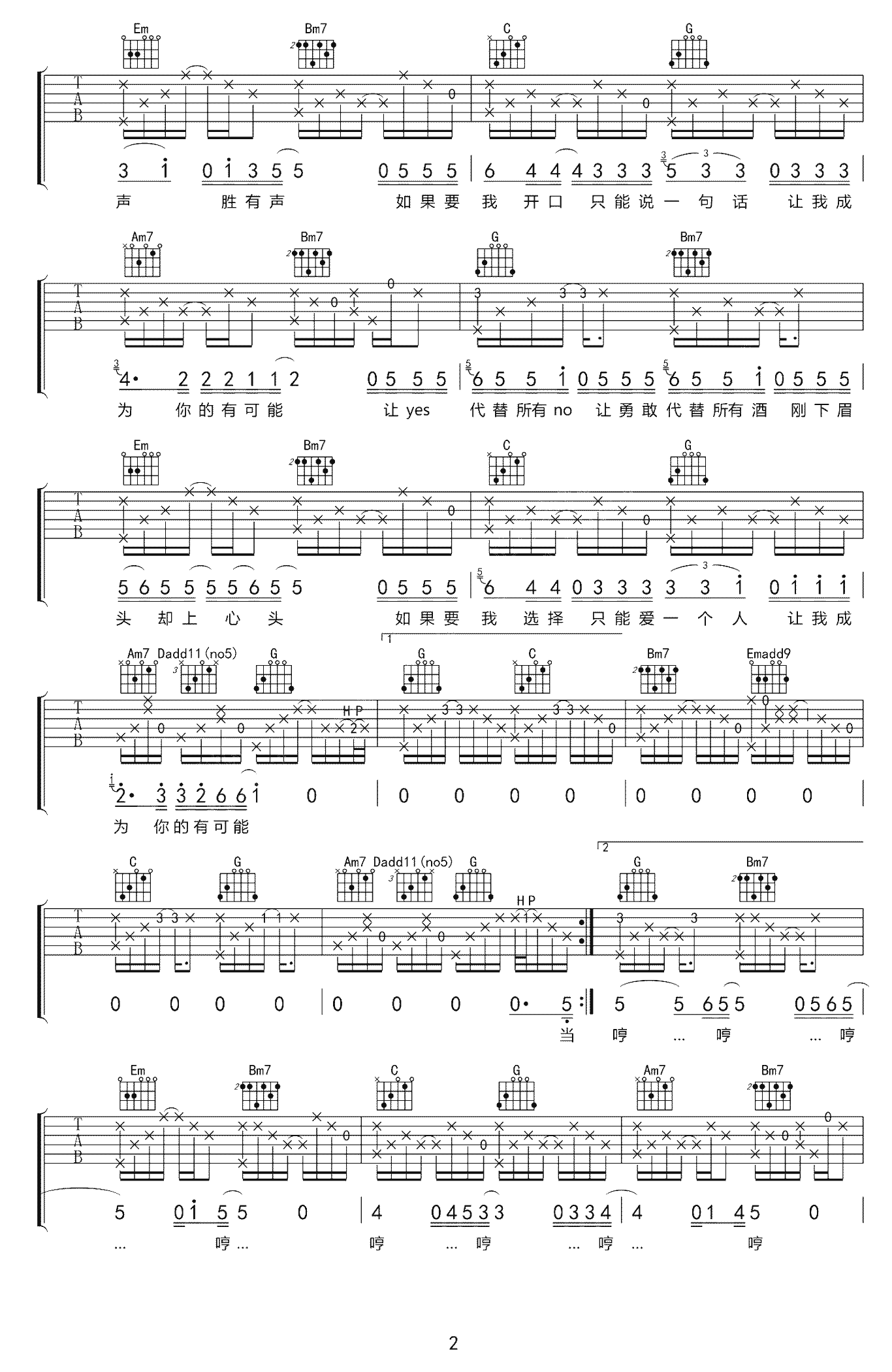 曲谱介绍: 《有可能的夜晚》吉他谱_曾轶可_G调原版弹唱谱_高清六线谱分享,《有可能的夜晚》这首歌是一首很好听的情歌,在两个人独处的时候,听这首歌非常有感觉,两个人的夜晚有无尽的可能。此次分享的曲谱为原版编配的G调版本,采用G调指法,在副歌部分节奏比较紧凑,变调夹夹2品。 《有可能的夜晚》吉他谱_曾轶可_G调原版弹唱谱_高清六线谱1: