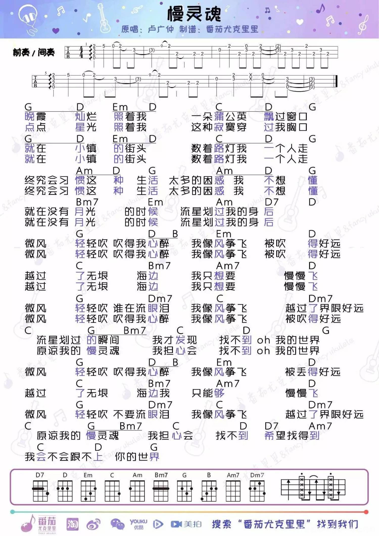 曲谱介绍: 卢广仲《慢灵魂》_G调尤克里里谱