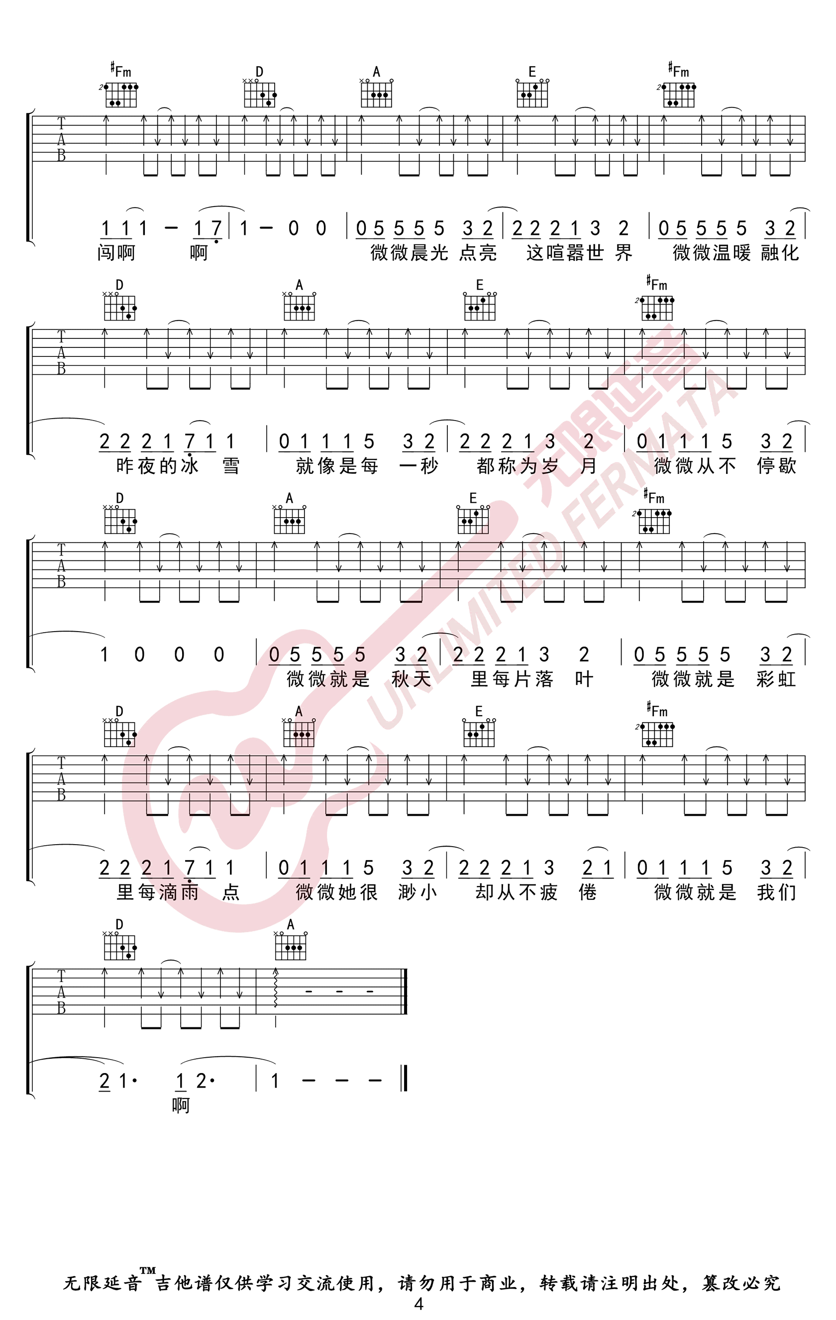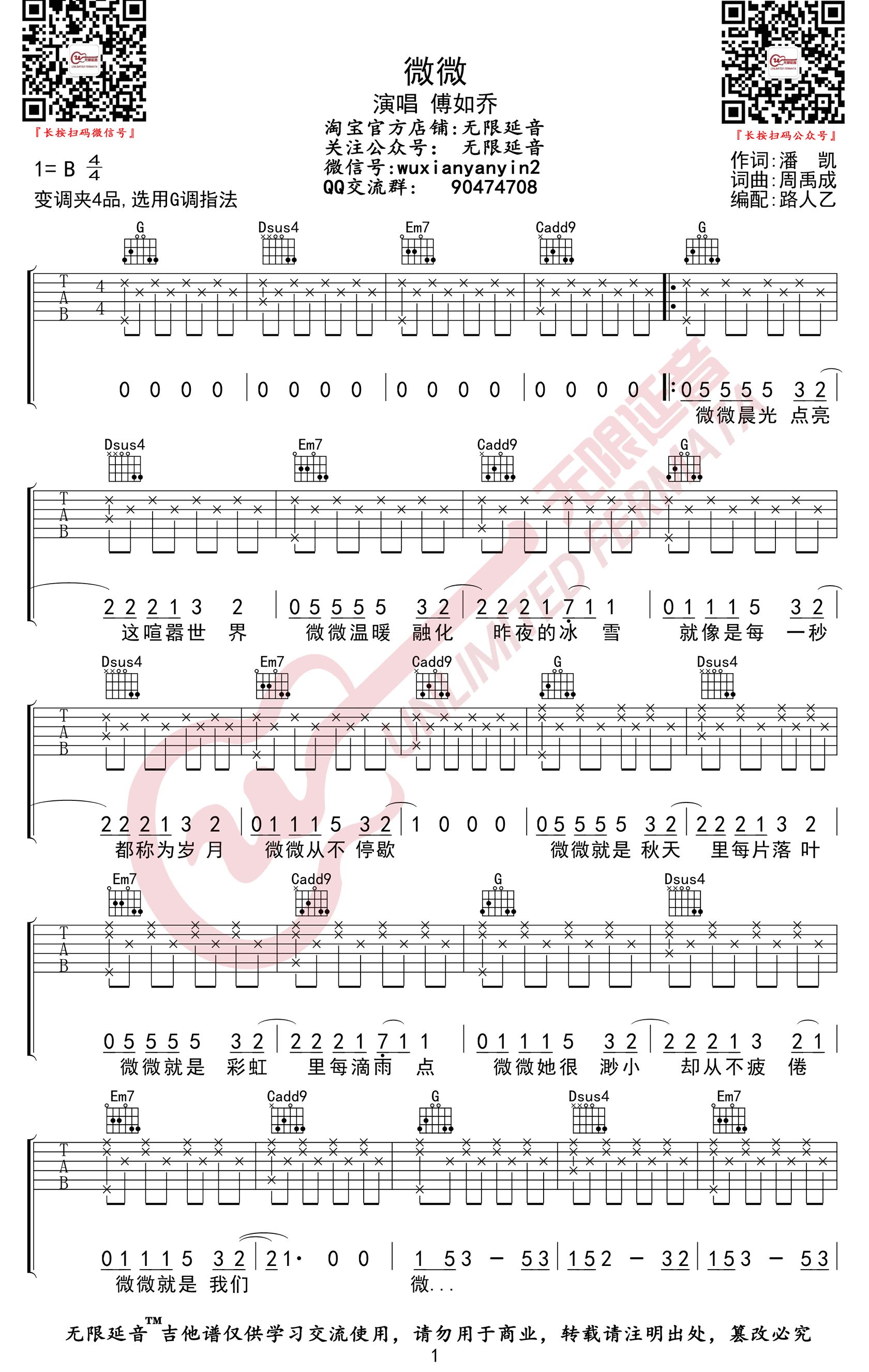 微微吉他谱 - 傅如乔 - G调吉他弹唱谱