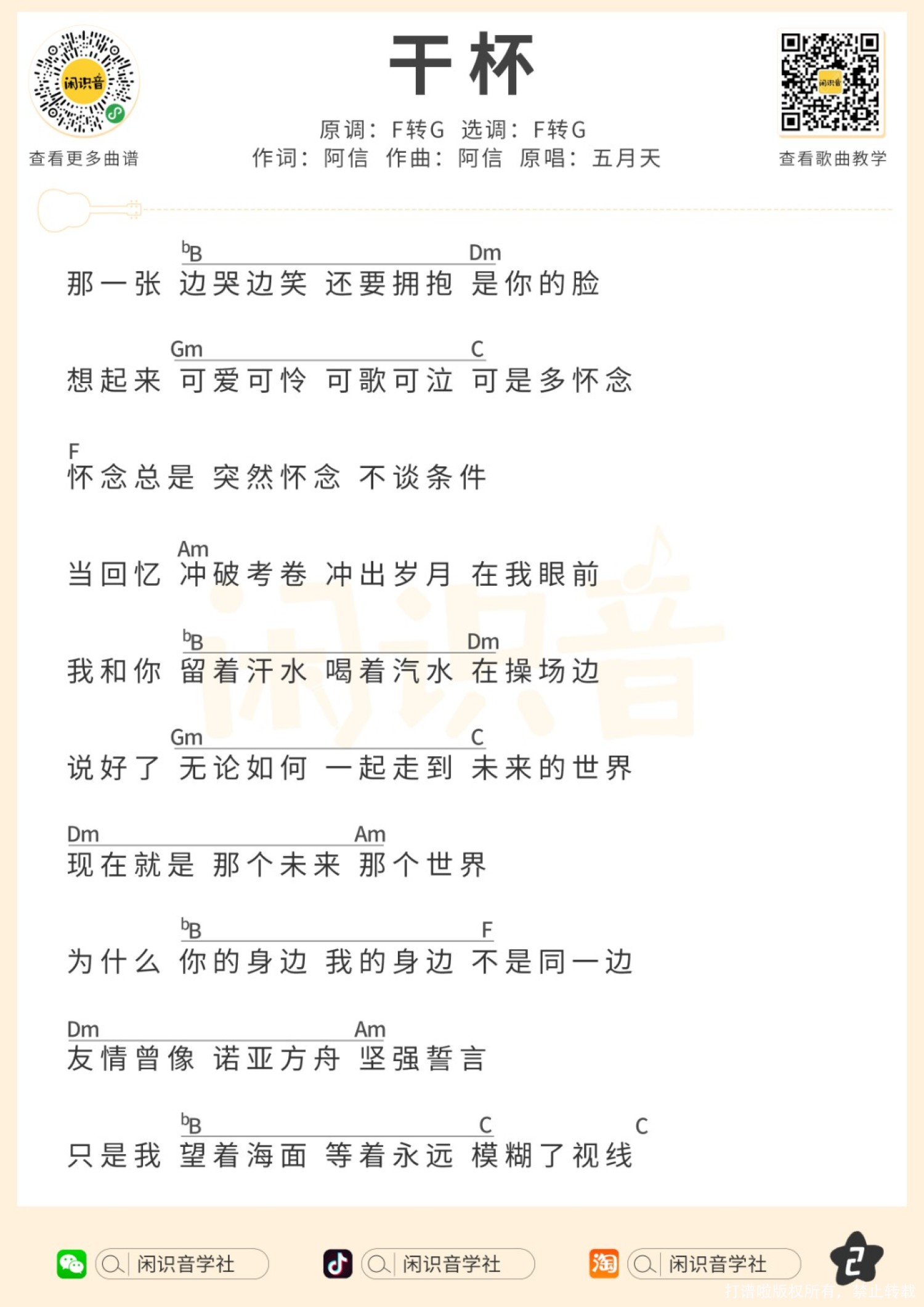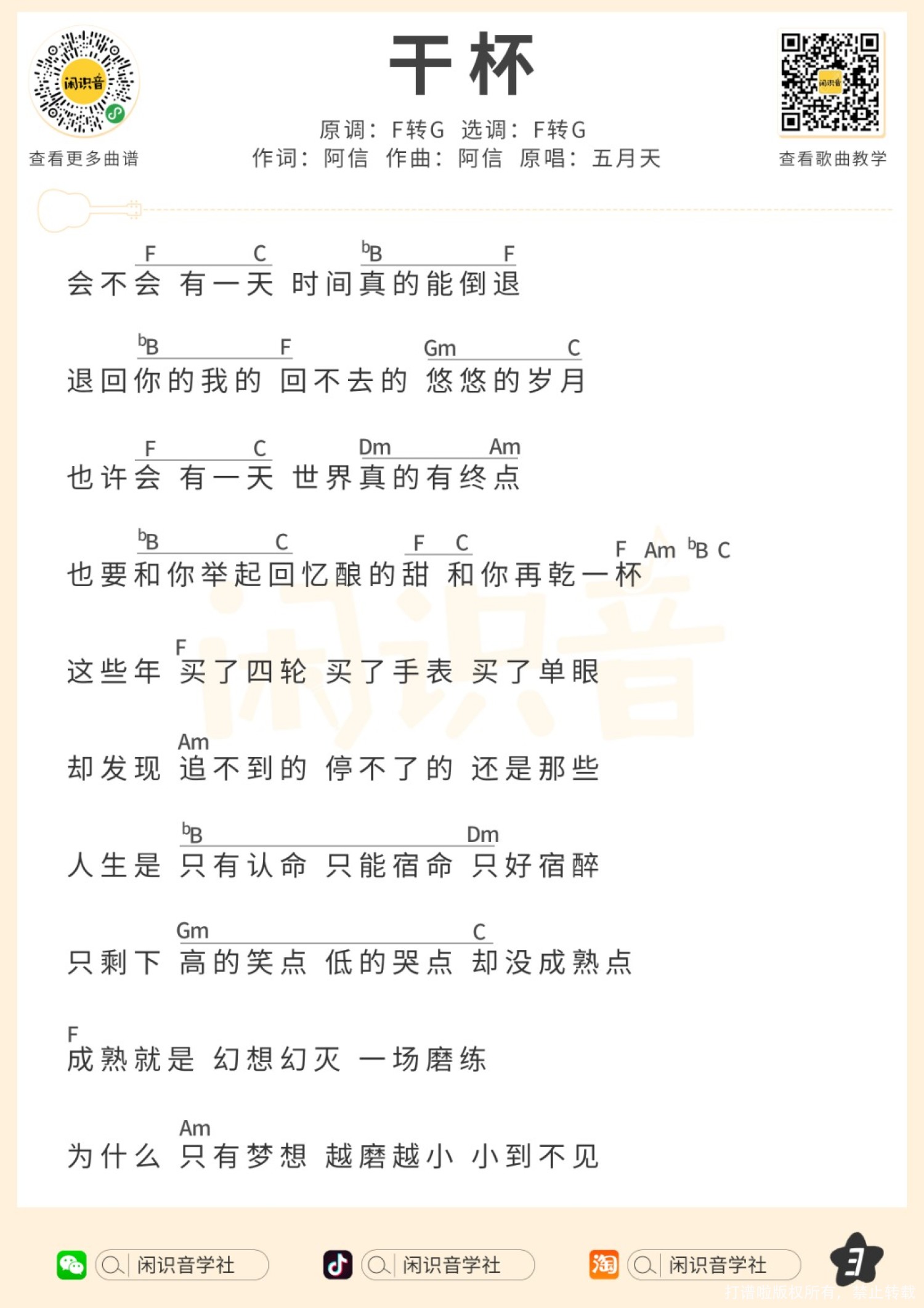 曲谱介绍: 五月天《干杯》_尤克里里谱