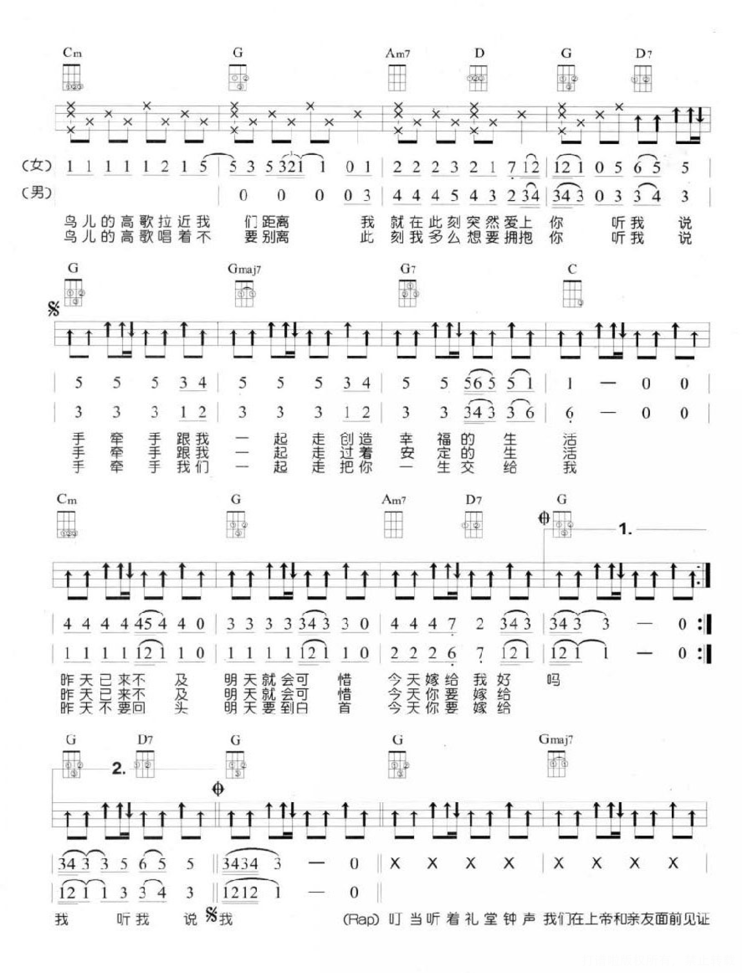 当前位置:琴谱网>尤克里里>今天你要嫁给我