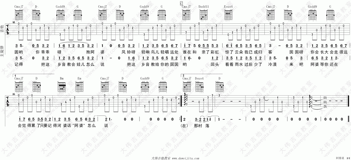 阿婆说_G调吉他谱 - 阿婆说 - G调吉他弹唱谱