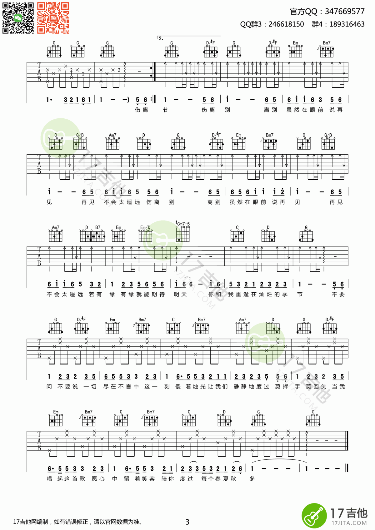 曲谱介绍: 张学友《祝福》吉他弹唱谱,采用G调指法编配,共有3张高清图谱。