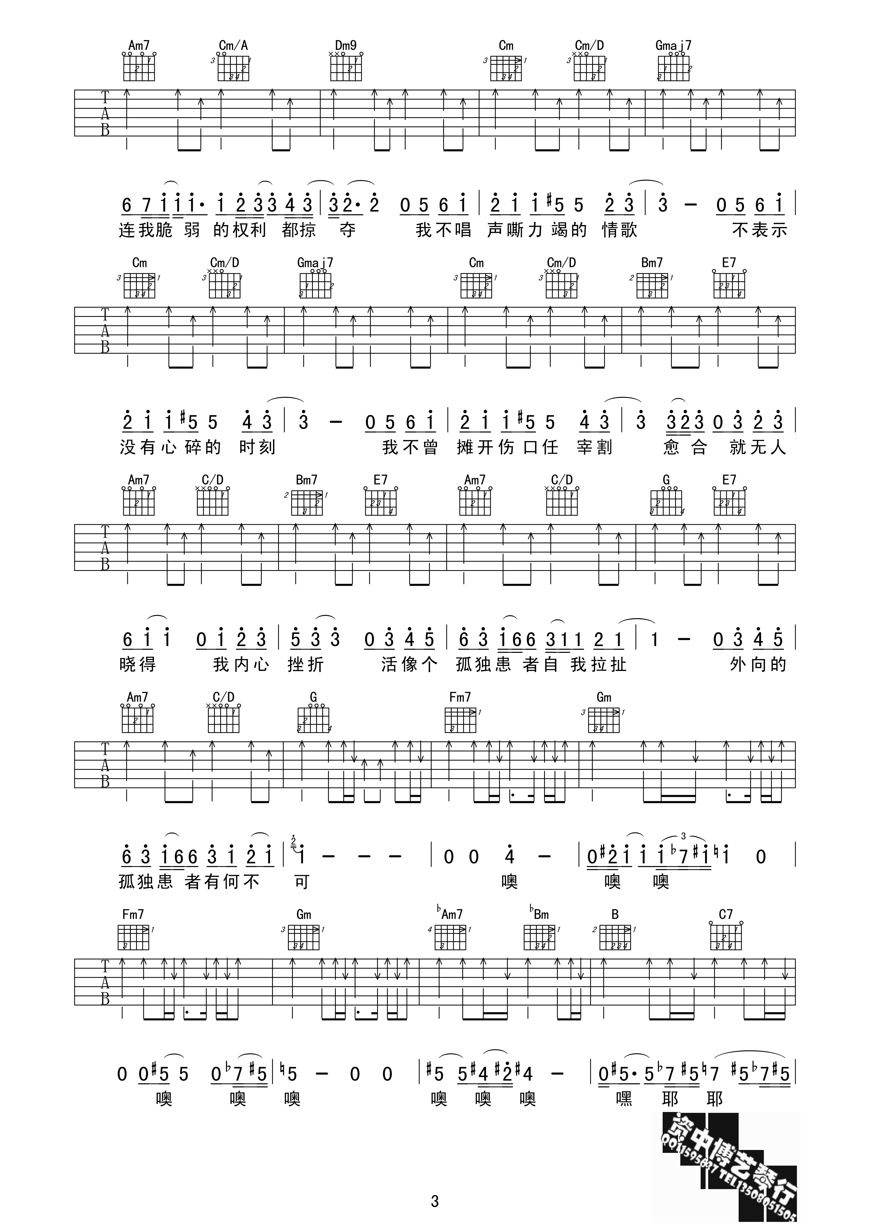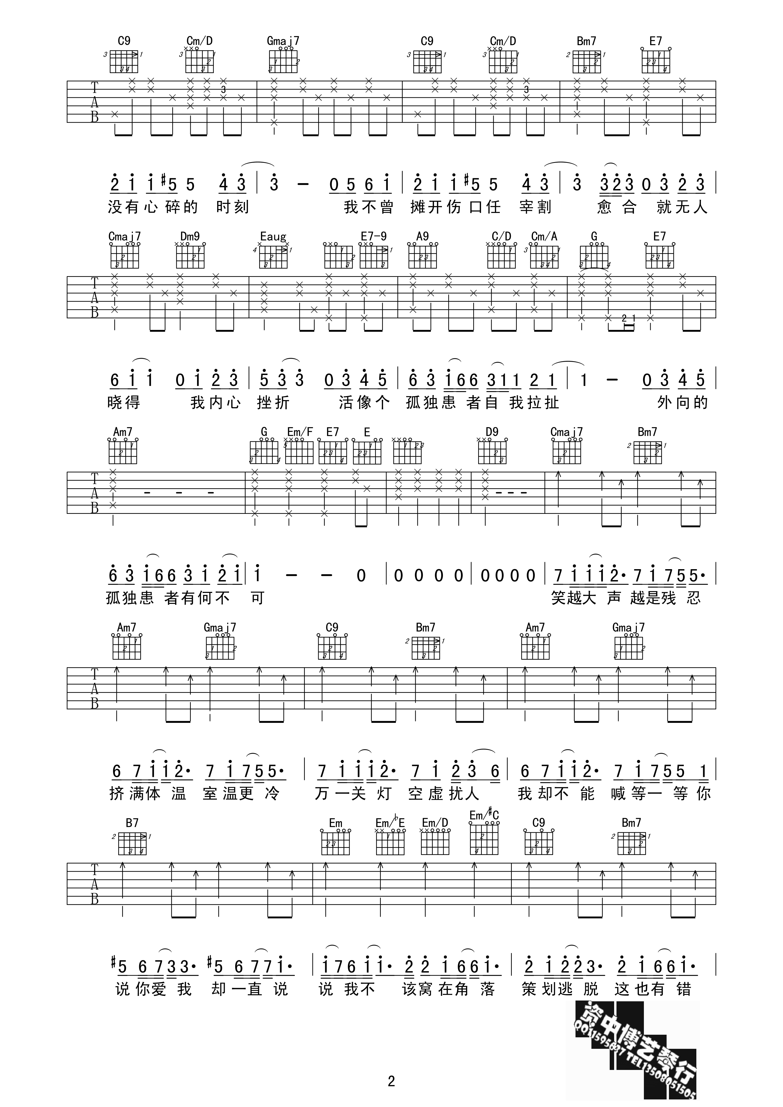 当前位置:琴谱网>吉他弹唱>孤独患者