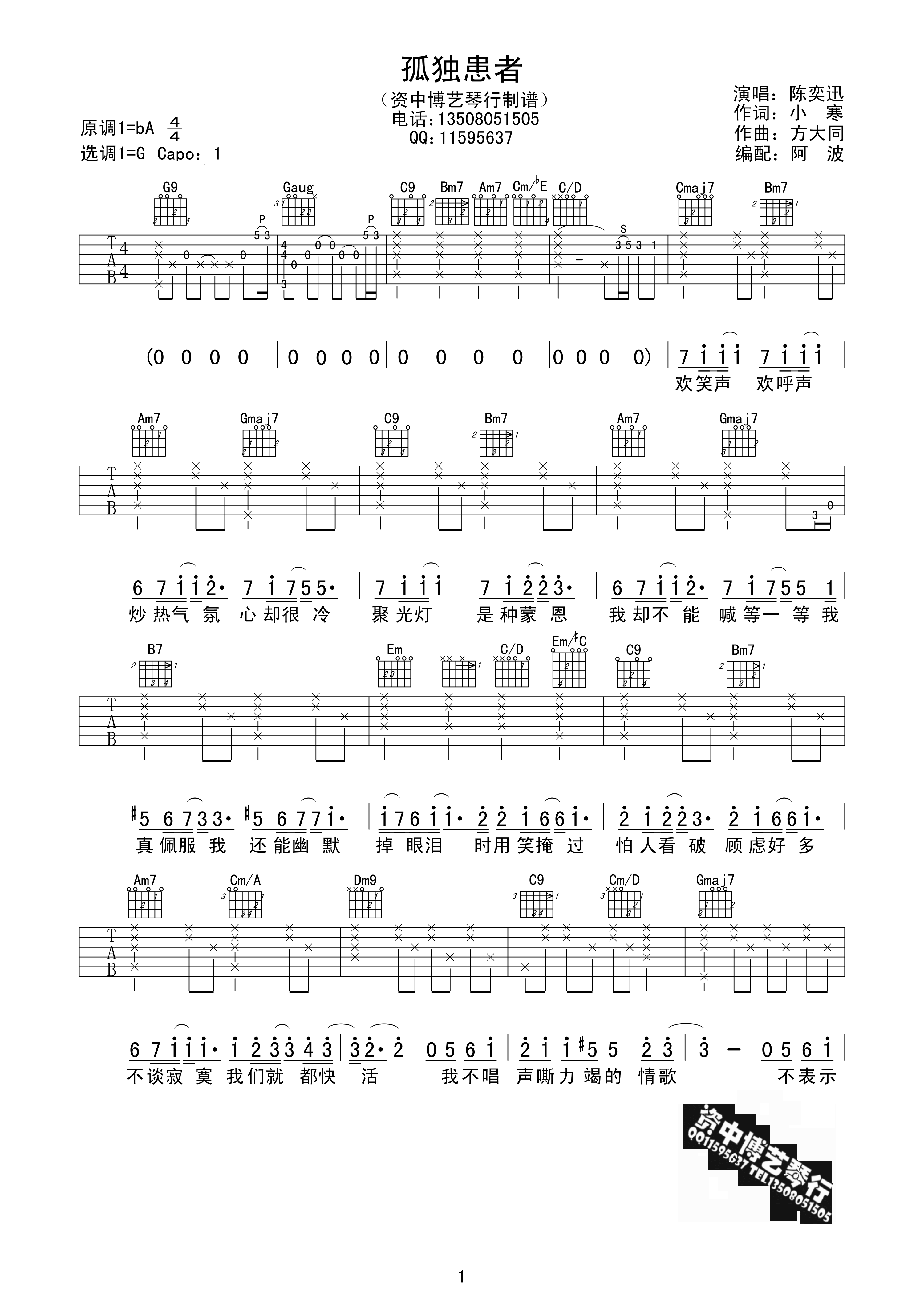 曲谱介绍: 《孤独患者》吉他谱_陈奕迅_G调原版弹唱谱_高清六线谱分享,《孤独患者》是由陈奕迅演唱的一首歌,由方大同谱曲。