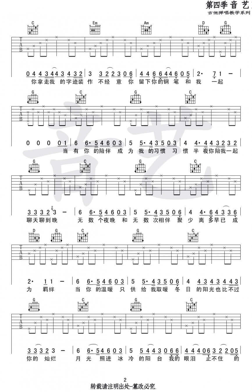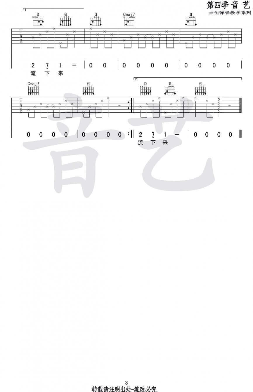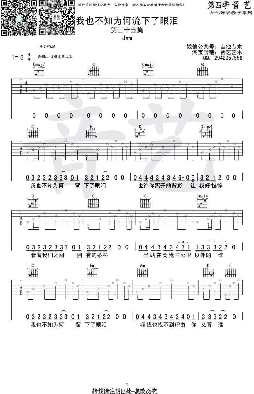 曲谱介绍: 《我也不知为何流下了眼泪》吉他谱_Jam_G调弹唱六线谱_高清图片谱分享,《我也不知为何流下了眼泪》是由Jam演唱的一首民谣歌曲。