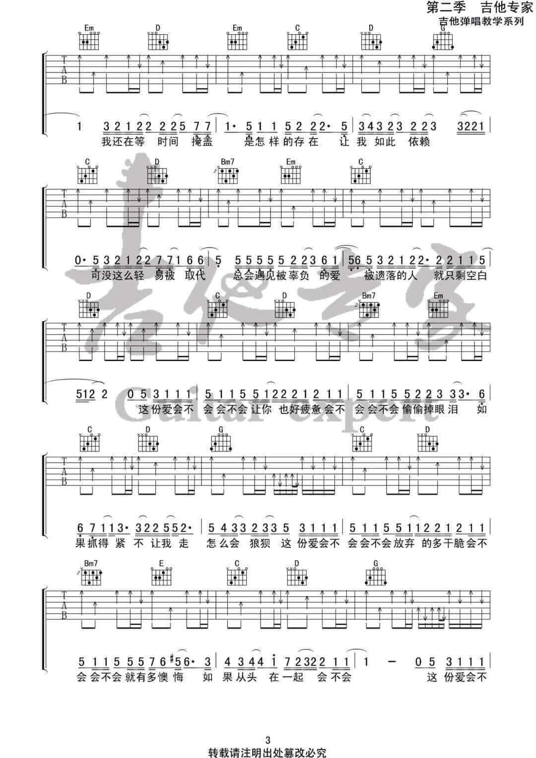 曲谱介绍: 会不会吉他谱_刘大壮_《会不会》G调原版弹唱谱_高清六线谱分享,《会不会》是由刘大壮演唱的一首歌。