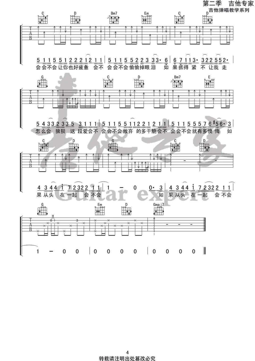 当前位置:琴谱网>吉他弹唱>会不会