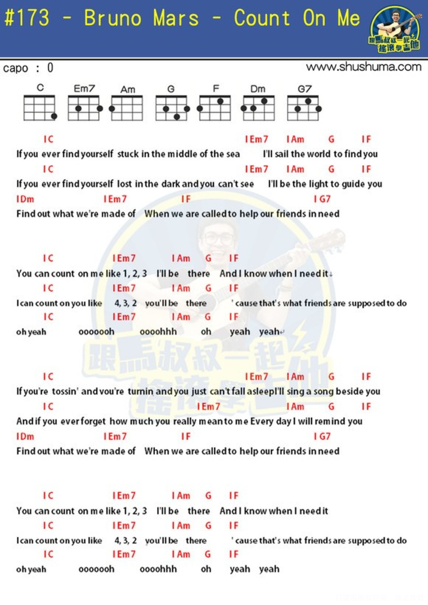 曲谱介绍: Bruno Mars《Count On Me》_C调尤克里里谱