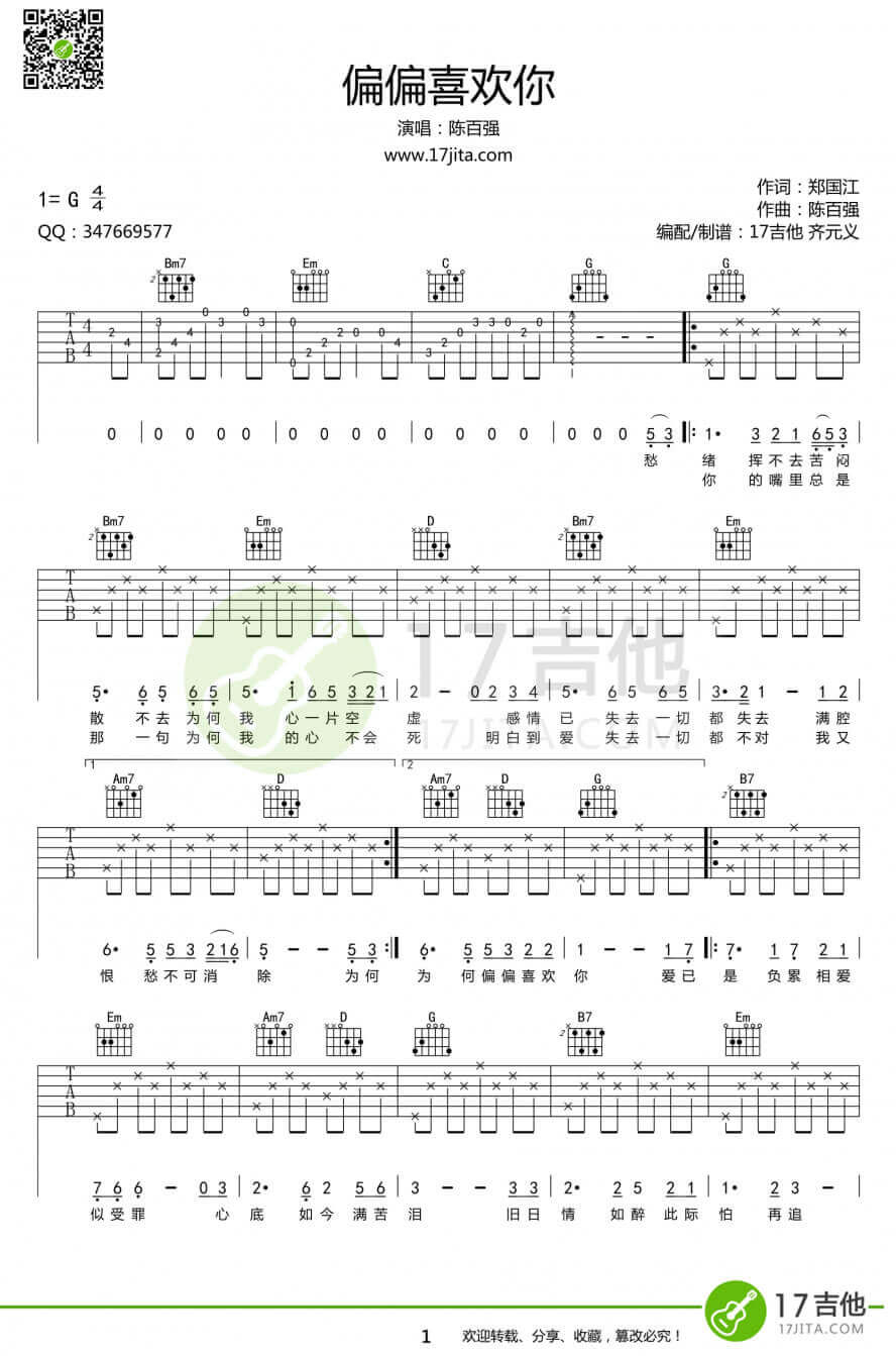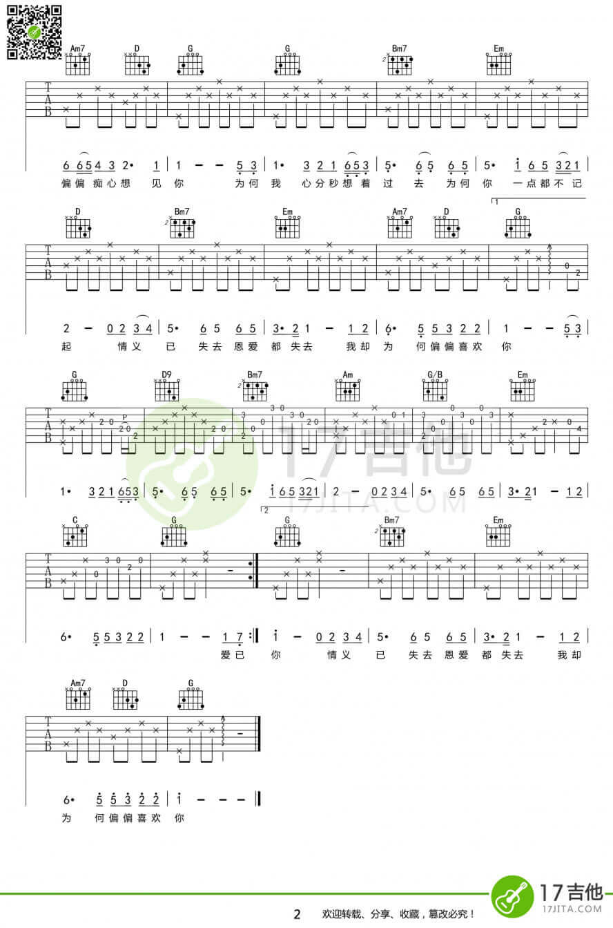 当前位置:琴谱网>吉他弹唱>偏偏喜欢你