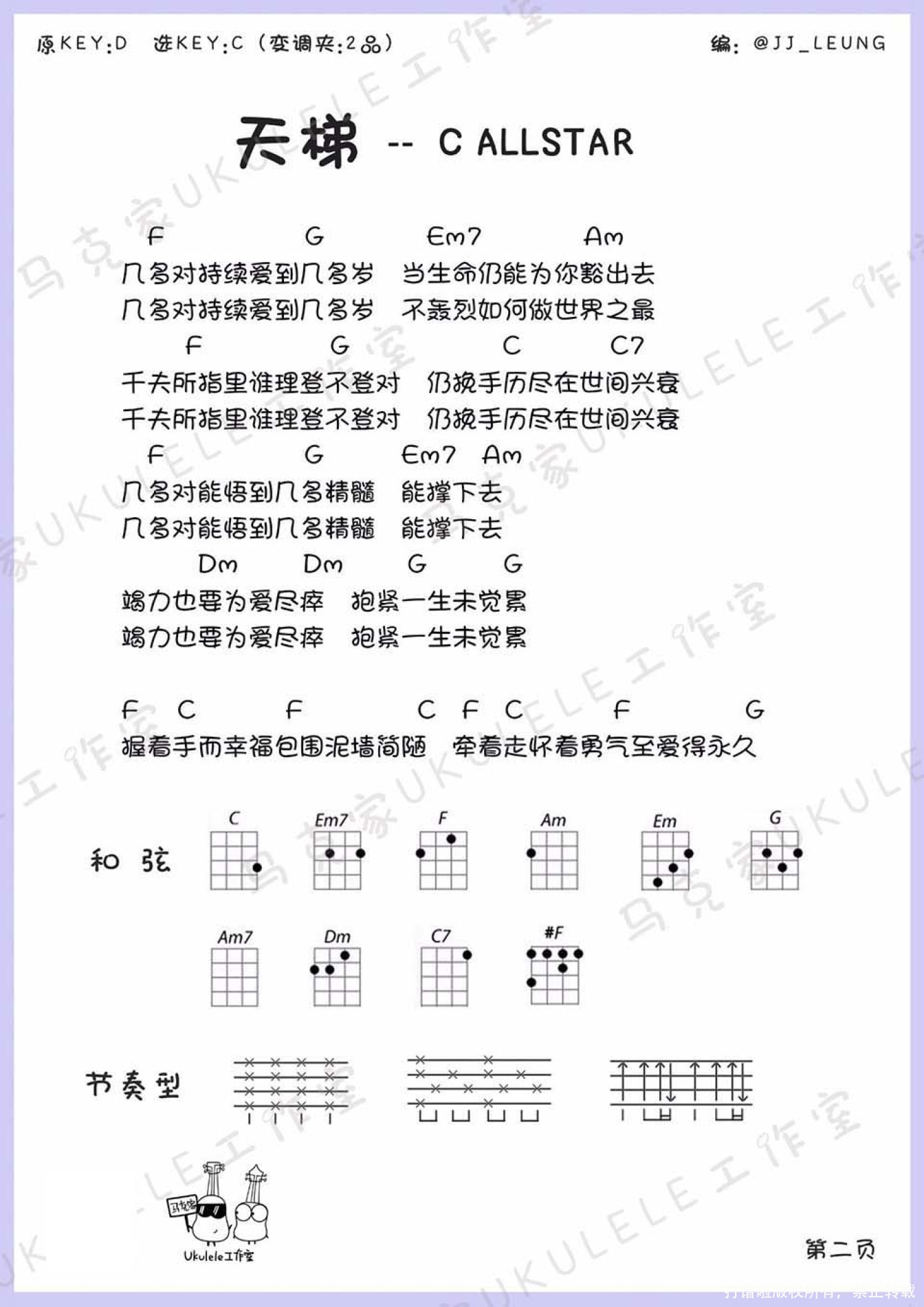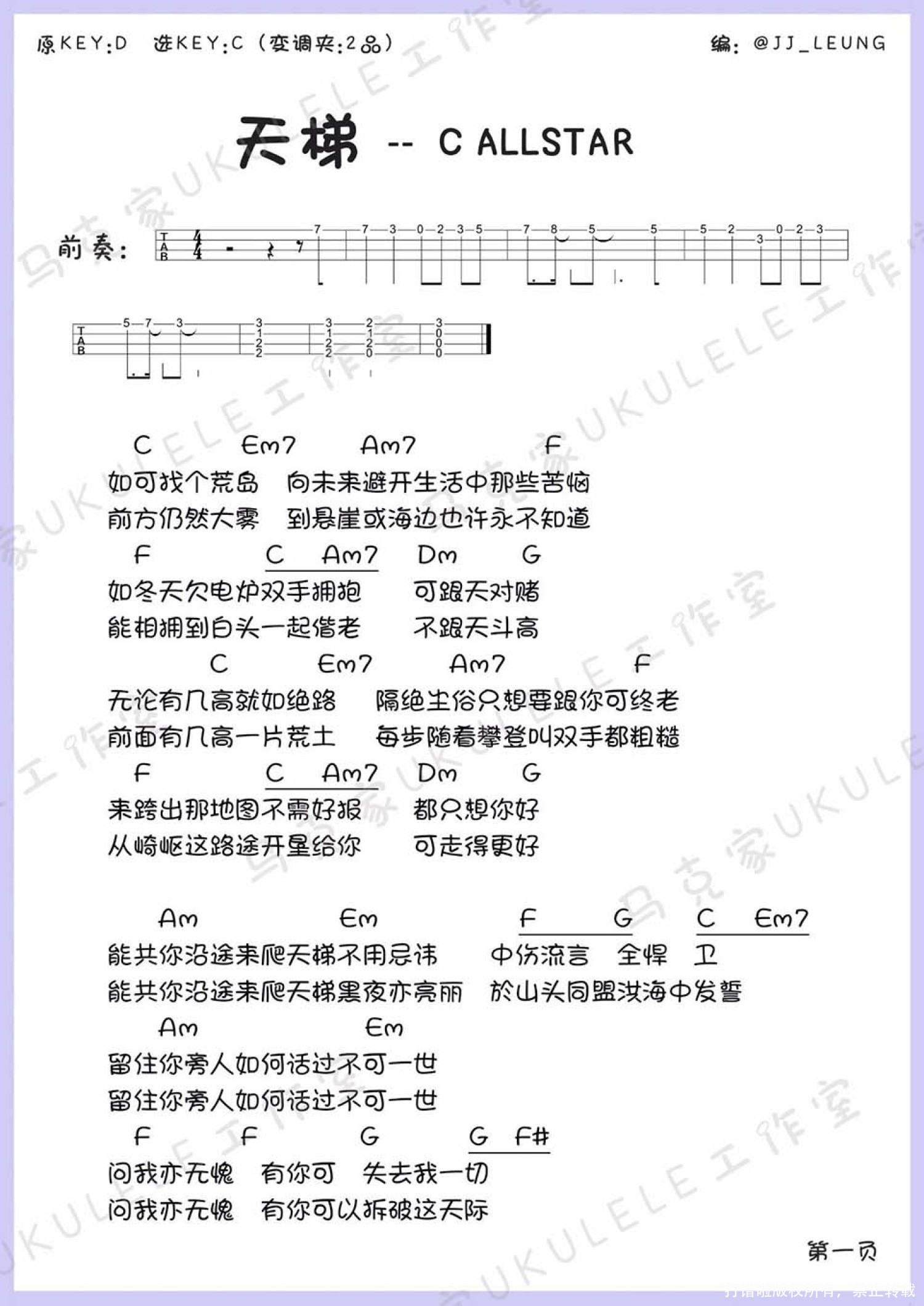 曲谱介绍: C Allstar《天梯》_C调尤克里里谱