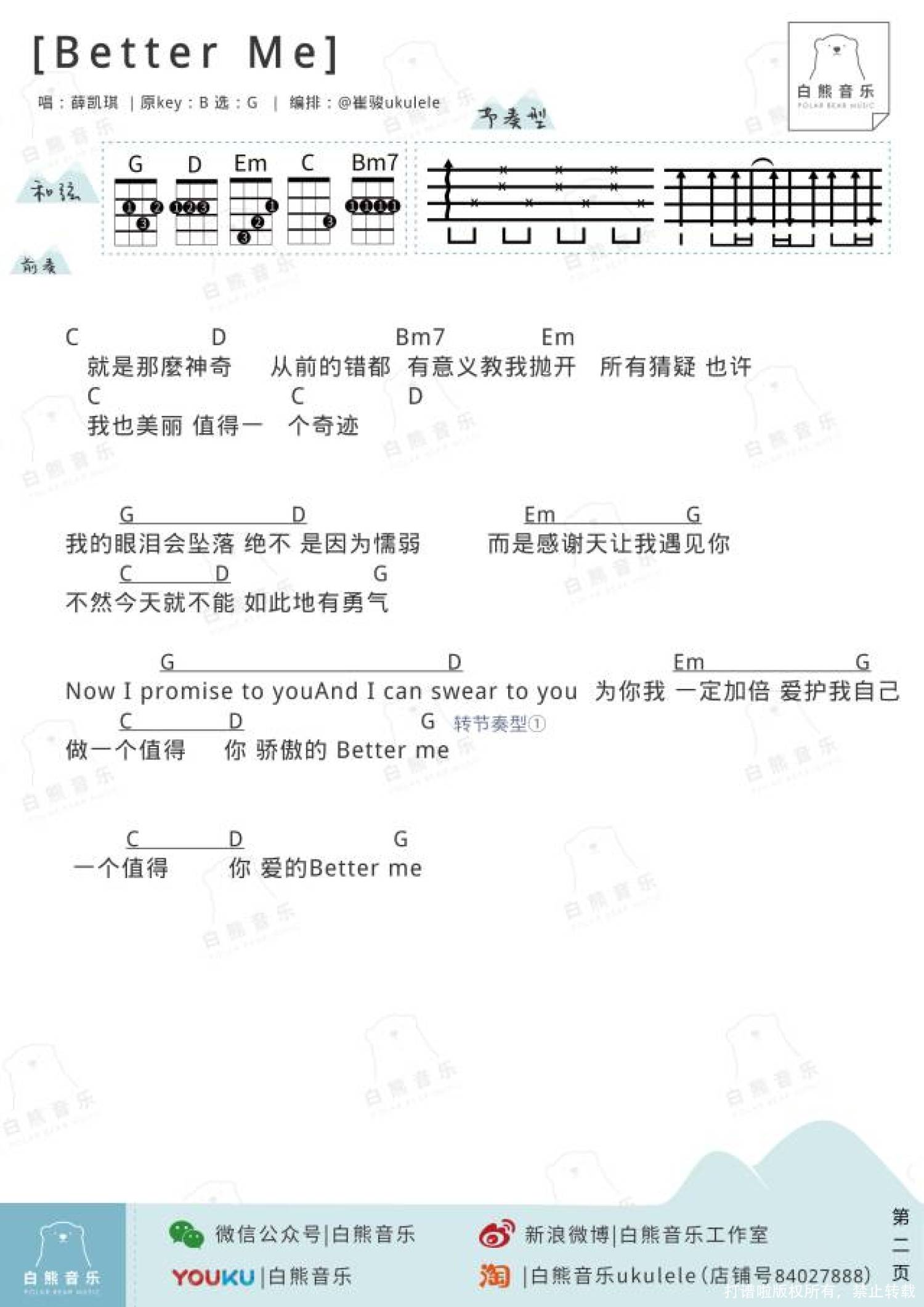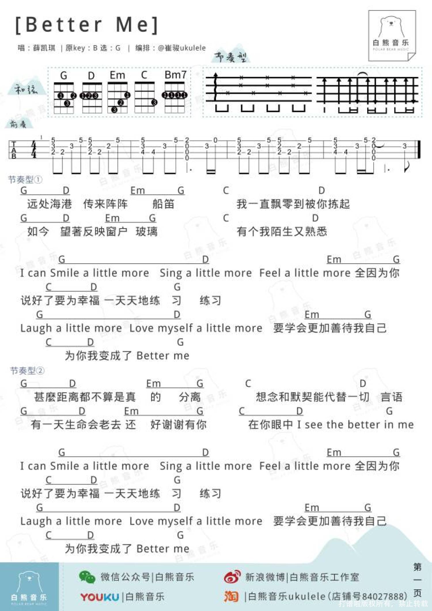 曲谱介绍: 薛凯琪《Better me》_G调尤克里里谱