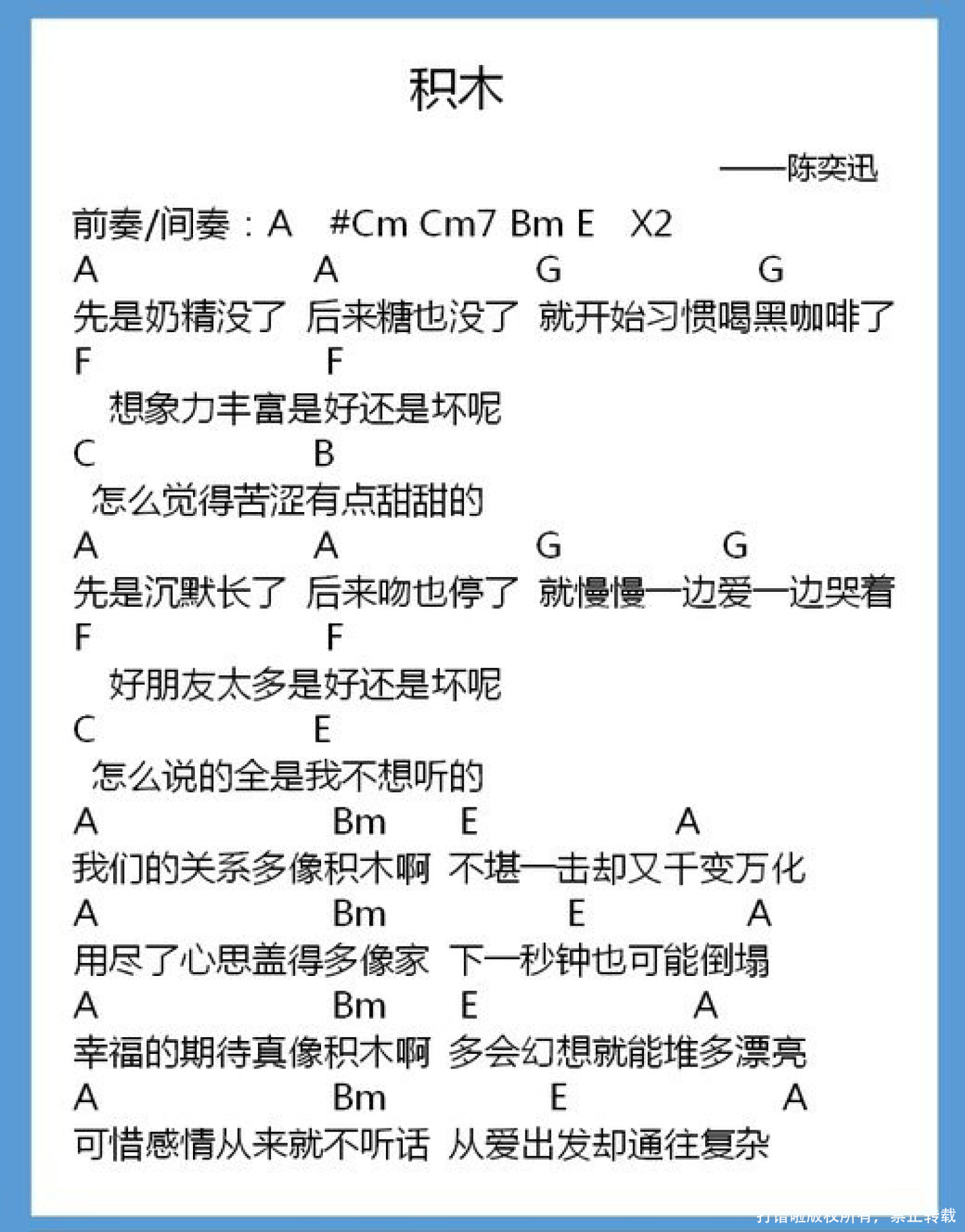 曲谱介绍: 陈奕迅《积木》_C调尤克里里谱
