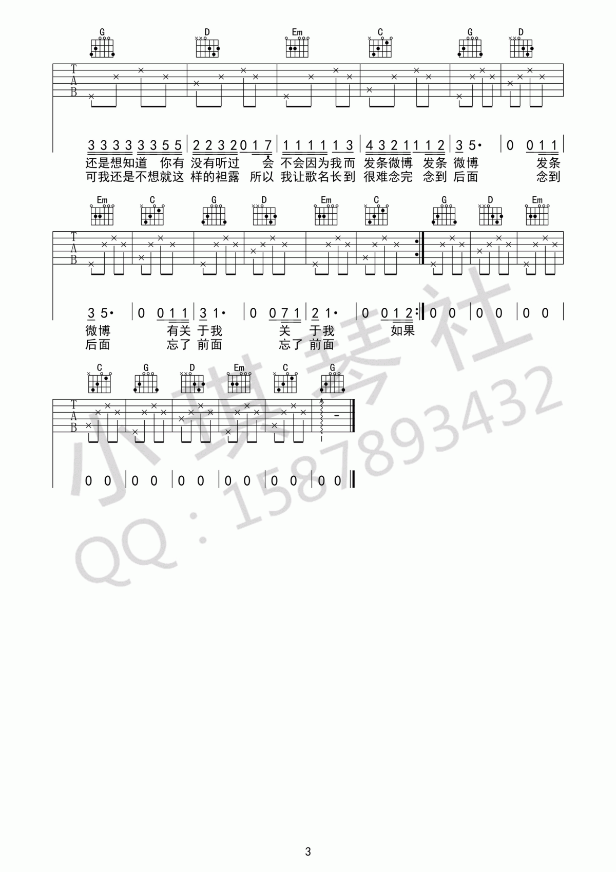 曲谱介绍: 我在十点差三分的时候开始想你《我在十点差三分的时候开始想你_G调》吉他弹唱谱,采用G调指法编配,共有3张高清图谱。
