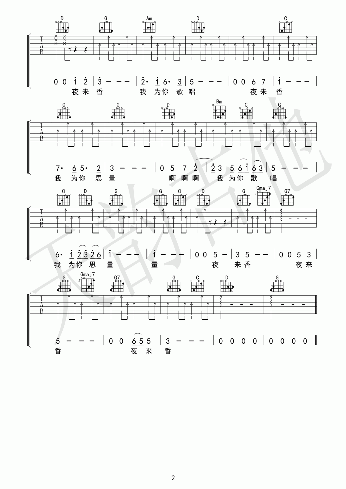 夜来香吉他谱 - 邓丽君 - G调吉他弹唱谱
