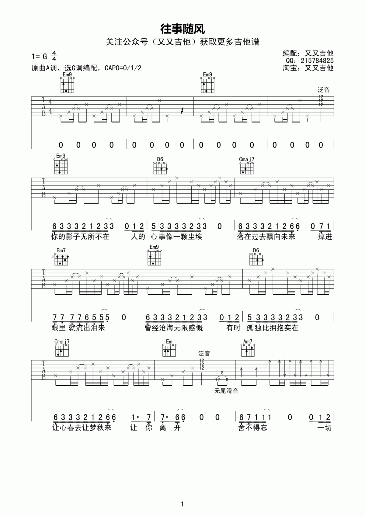 当前位置:琴谱网>吉他弹唱>往事随风