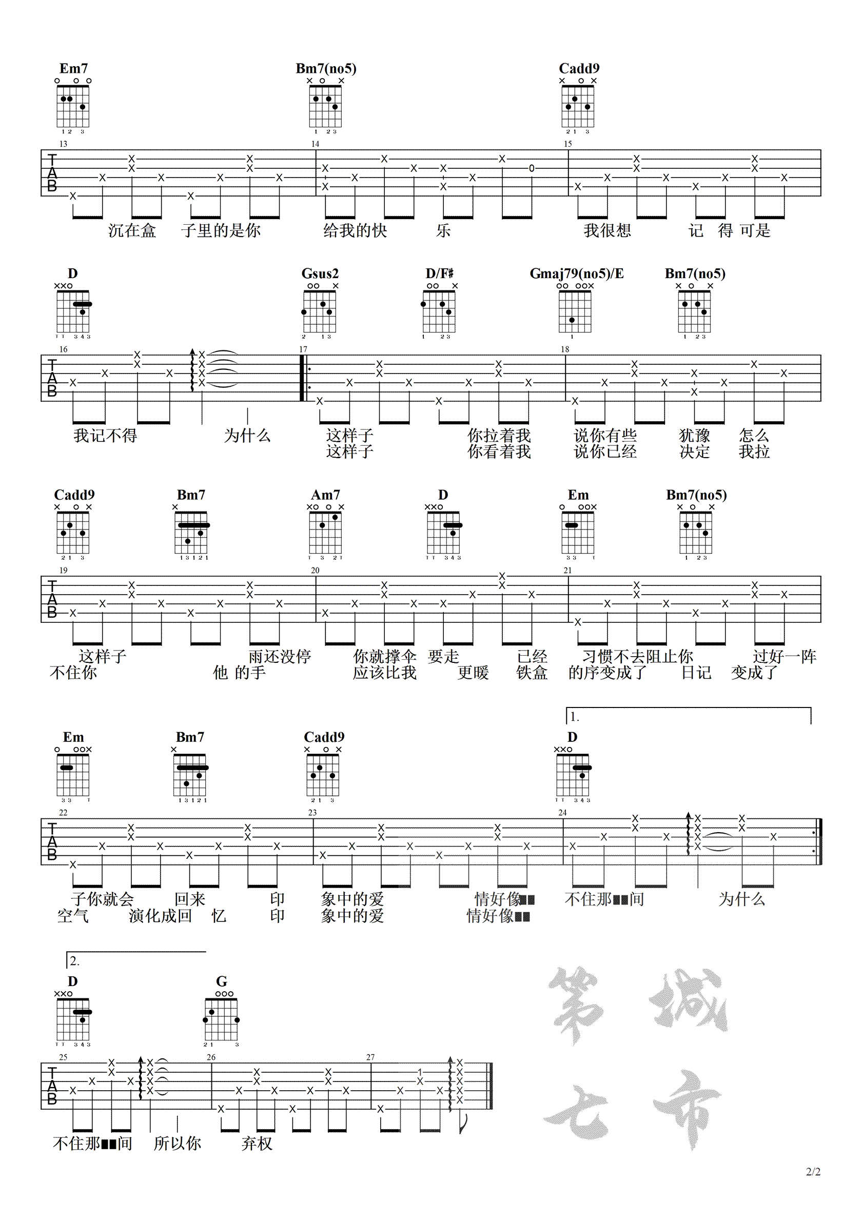 吉他弹唱D调来源:良好市民124 浏览2024-02-07 20:51发布图谱共2页