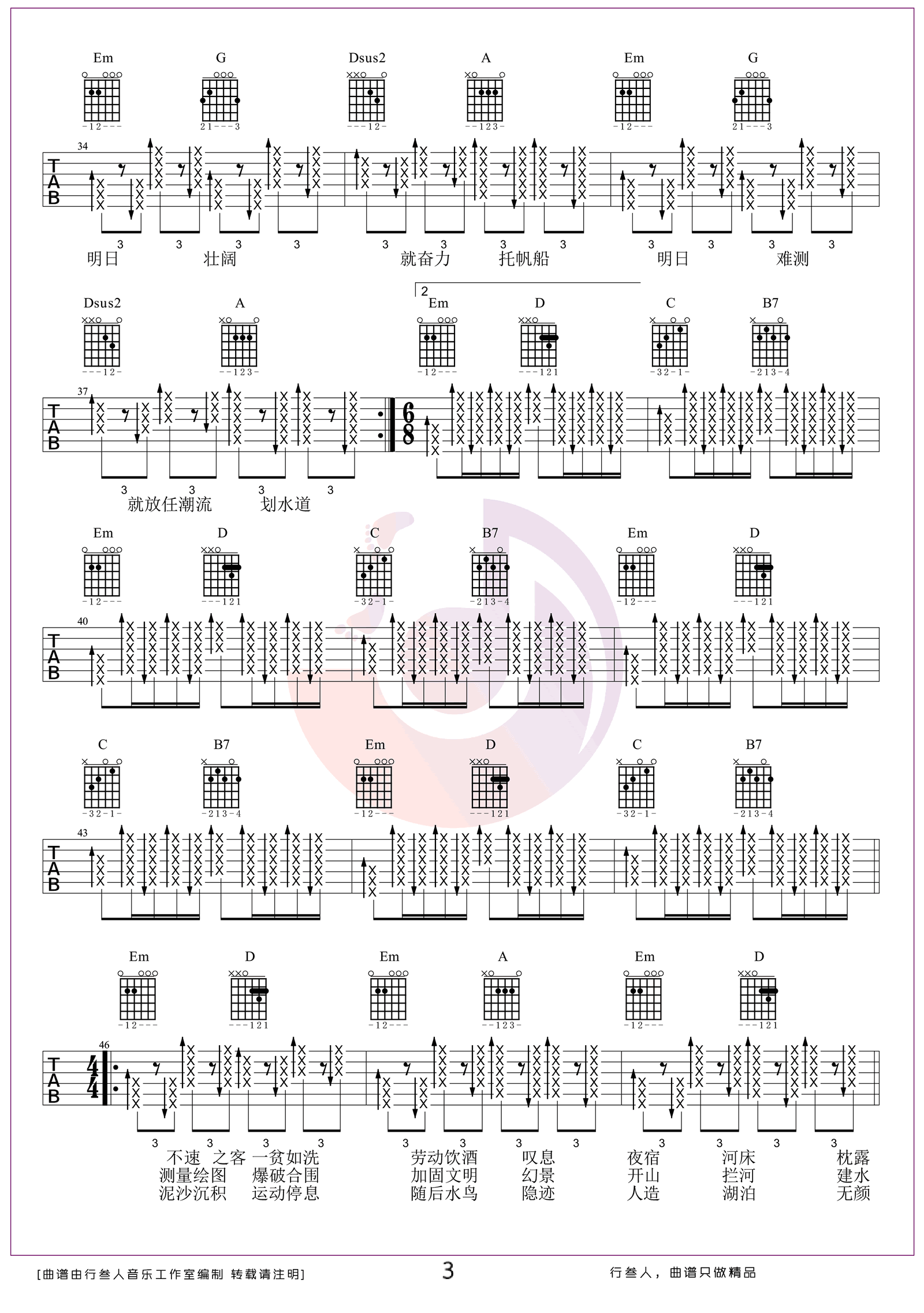 曲谱介绍: 泥河吉他谱_万能青年旅店_《泥河》G调弹唱六线谱_高清图片谱分享,《泥河》是由万能青年旅店演唱的一首歌,这首歌里有几丝试图探寻终极答案而无果的些许惘然,与对社群集体精神气质发展波荡的失望。