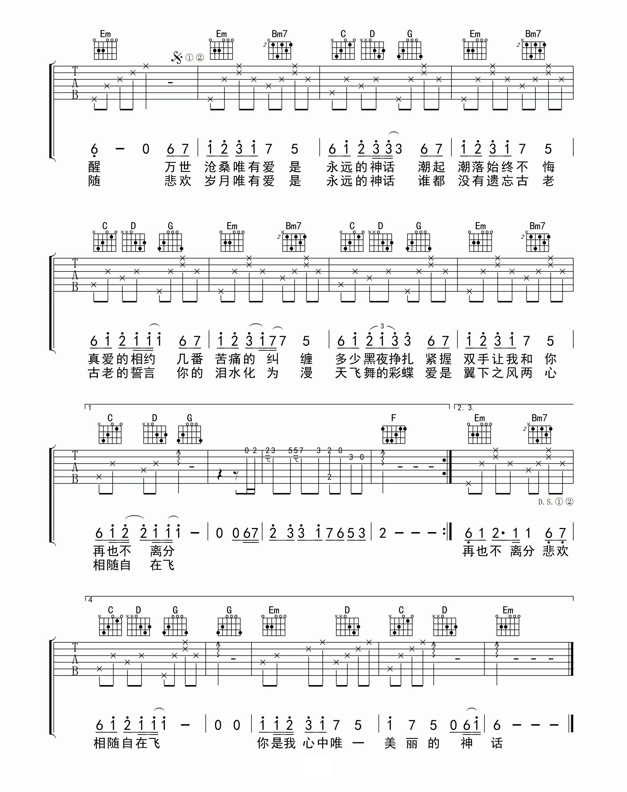 当前位置:琴谱网>吉他弹唱>美丽的神话