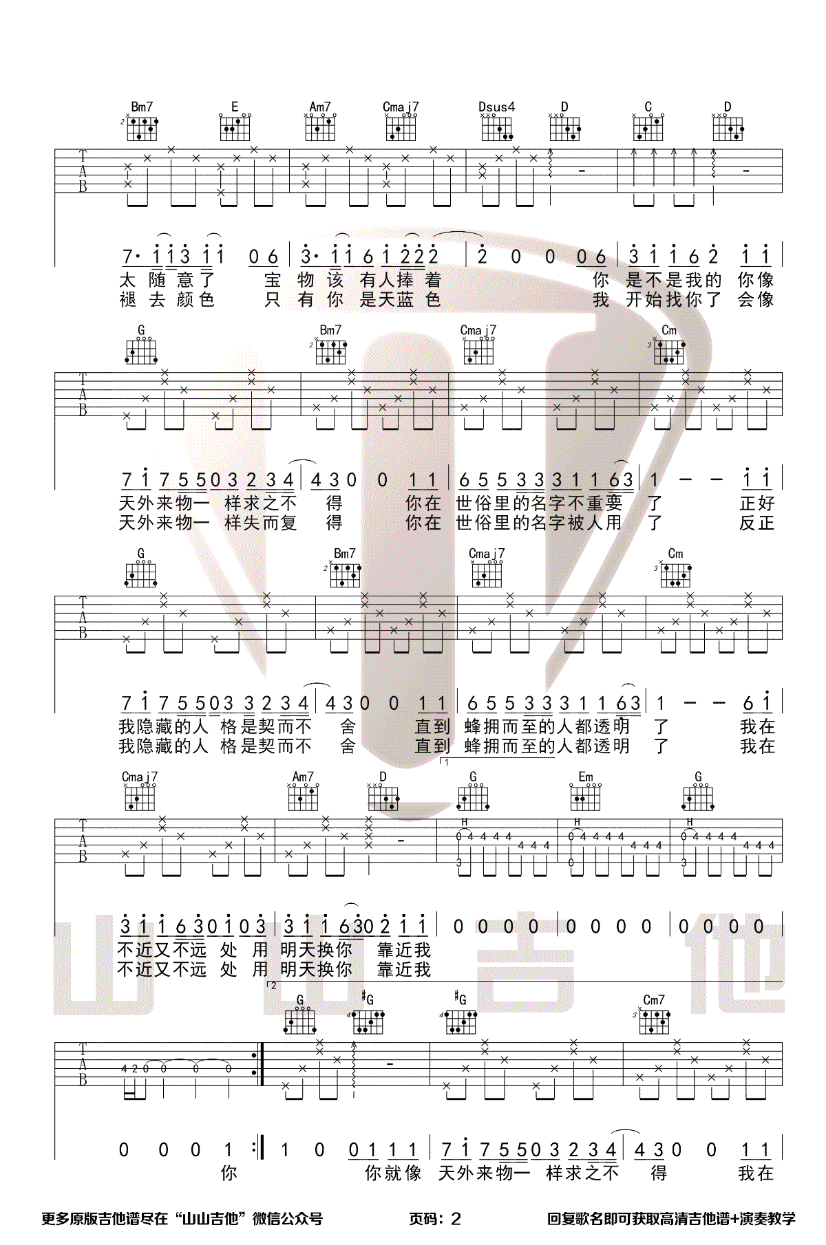 曲谱介绍: 《天外来物》吉他谱_薛之谦_G调原版弹唱谱_高清六线谱分享,《天外来物》是由薛之谦最新发布的一首新歌,相信很多人喜欢薛之谦,是因为他别具一格而又深情款款的嗓音以及感同身受的经历。这首歌主要向我们演绎了在向自己心爱的人慢慢靠近的那种小心翼翼还有对他的一往情深。“世界上终有一人能降服你,妖怪”是这首歌曲的灵感来源。