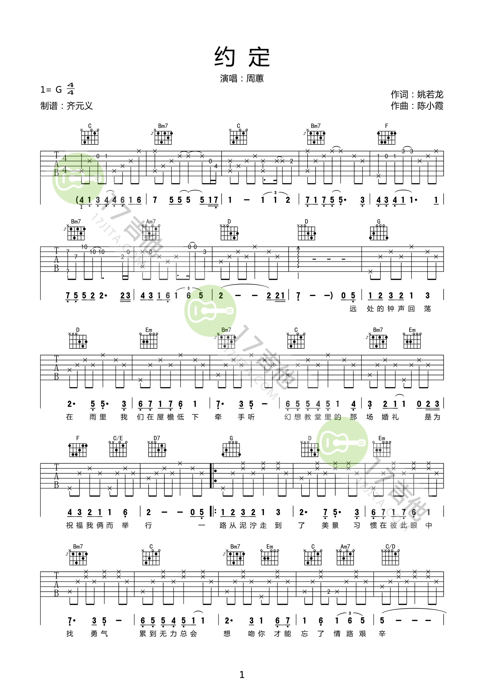 当前位置:琴谱网>吉他弹唱>约定