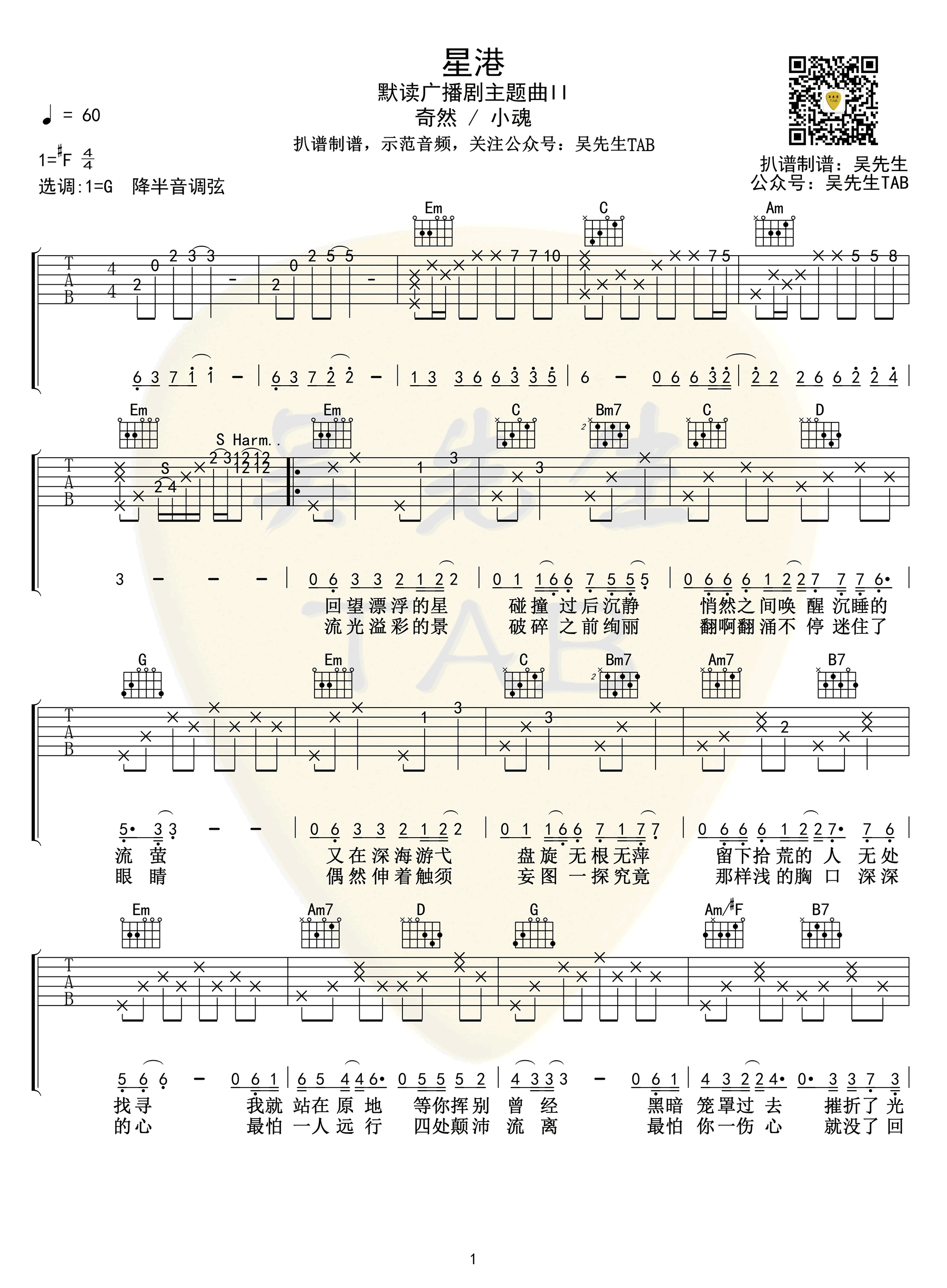 星港吉他谱 - 奇然/小魂 - G调吉他弹唱谱