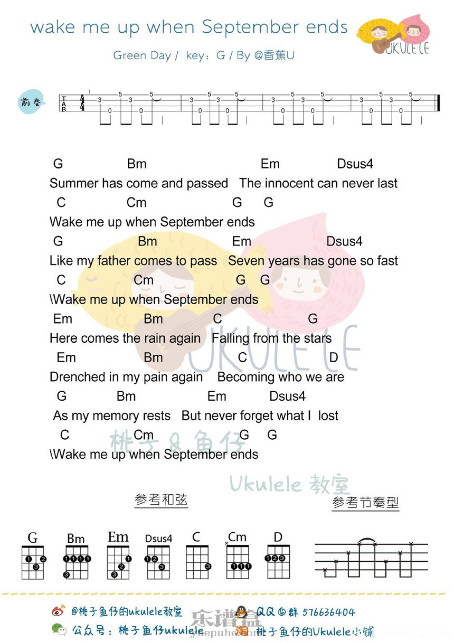 曲谱介绍: Green Day《wake me up when September ends》_C调尤克里里谱
