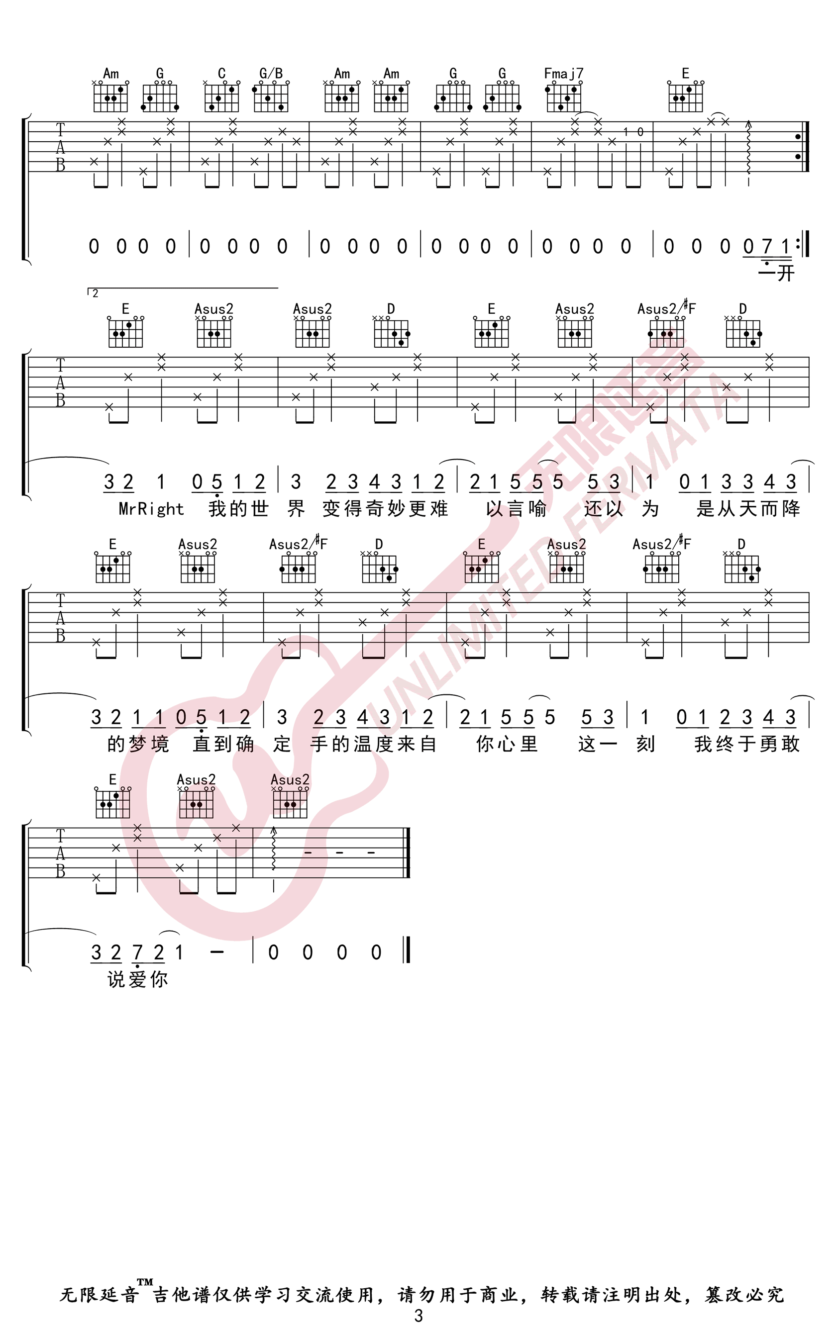 曲谱介绍: 《说爱你》吉他谱_沈以诚/蔡依林_A调弹唱六线谱_高清图片谱分享,《说爱你》是由周杰伦作曲、蔡依林演唱的一首歌曲,同时这首歌也是电影《空中拜金女》的主题曲,这里是沈以诚翻唱版本。歌曲表达了爱对自己的改变,以至于一切感受都往美好的方向变化,歌曲中的笃定是不是让我们更有勇气表达爱意了呢?歌曲还刻画了爱情萌发时的悸动,把一个人心里的小鹿乱撞生动描绘,这首歌也因此散发着青春的气息。