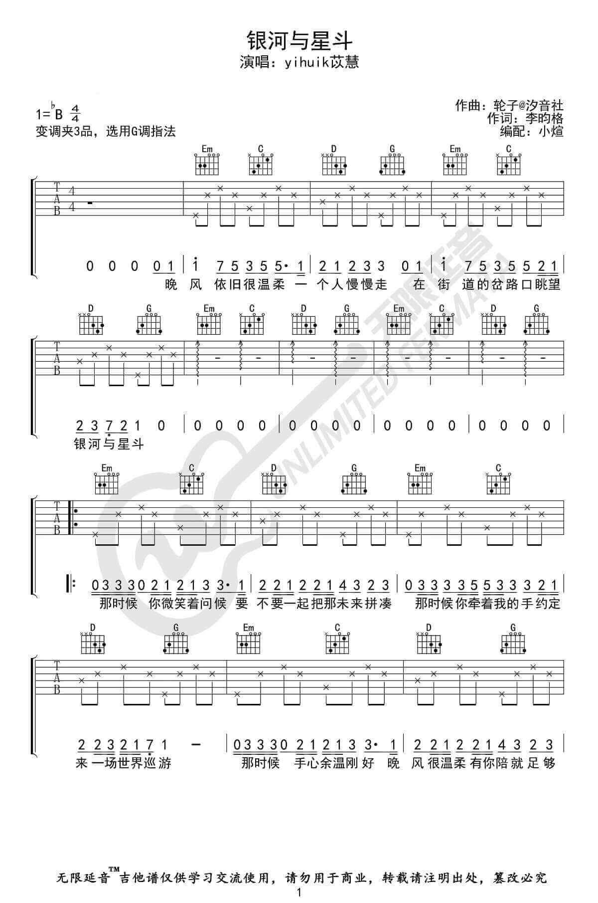银河与星斗吉他谱 - yihuik苡慧 - G调吉他弹唱谱