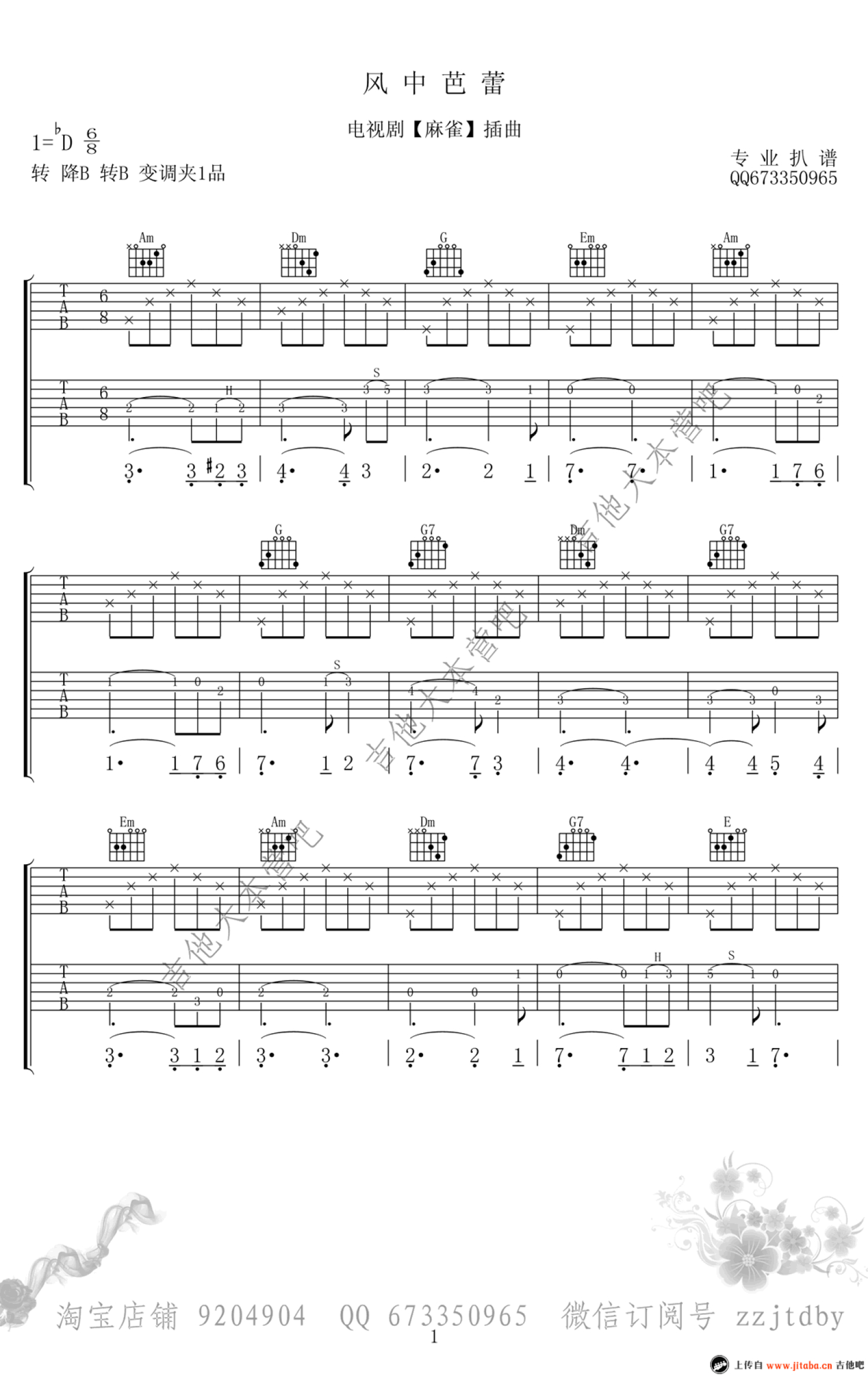 曲谱介绍: 郁可唯风中芭蕾吉他谱,电视剧《麻将》插曲,风中芭蕾吉他弹唱谱,变调夹夹一品
